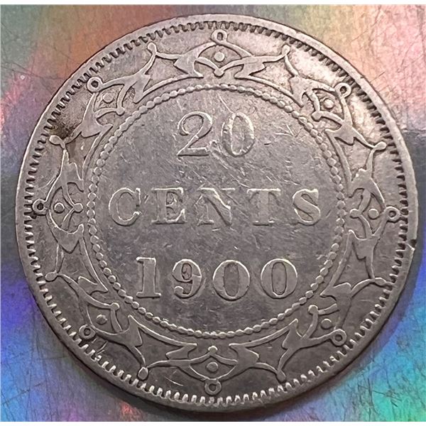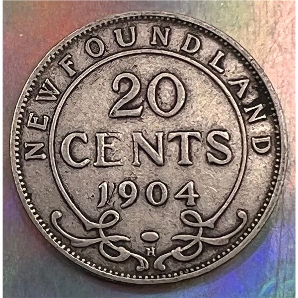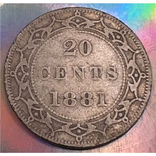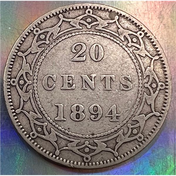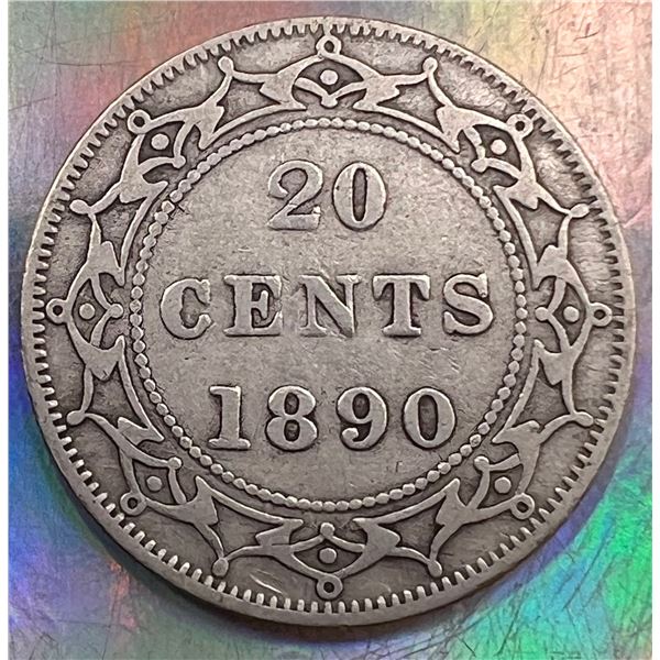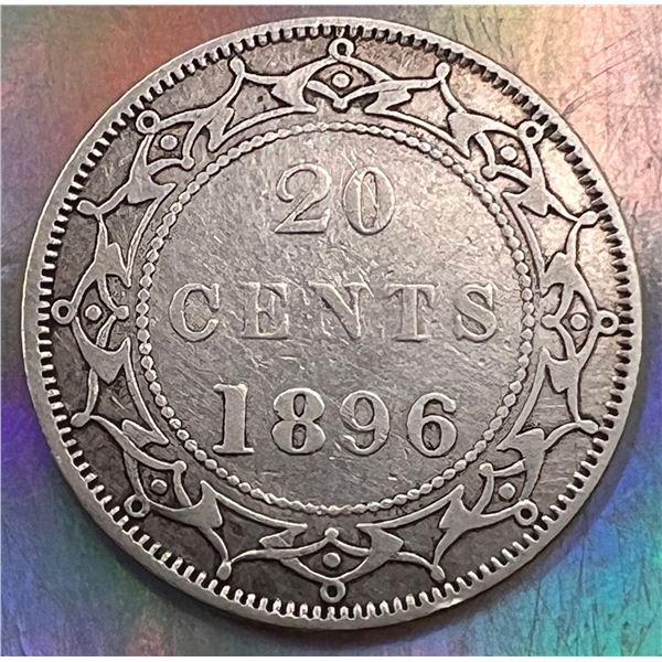 1896 Obv#2 Sm-96 Newfoundland Silver 20 Cents Fine-15