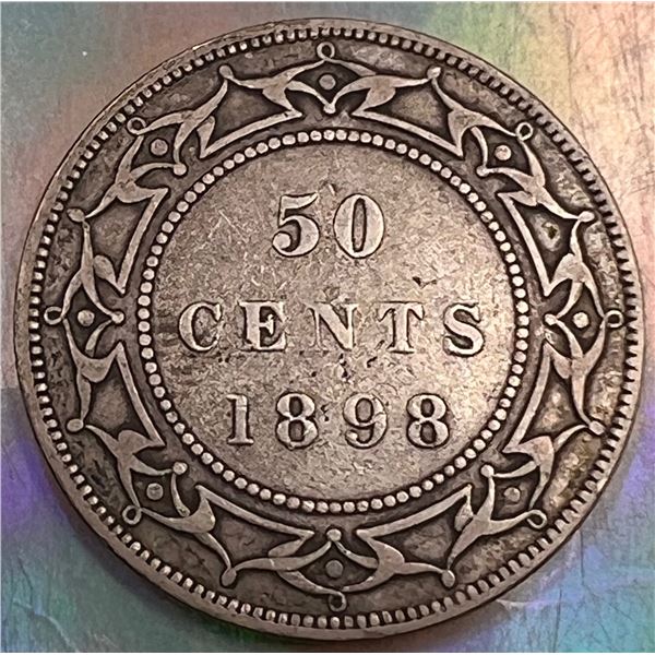 1898 Obv #2 Sm W Newfoundland Silver 50 Cents F-12