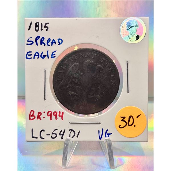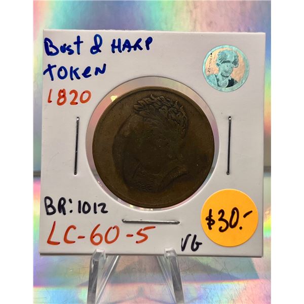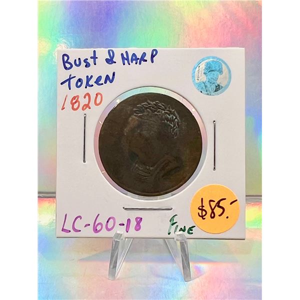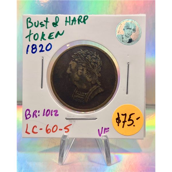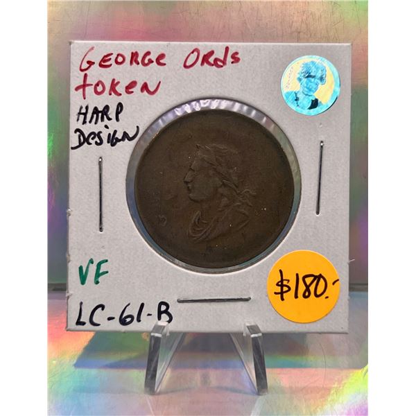 George Ords Token ,Harp Design, Very Fine LC-61-B