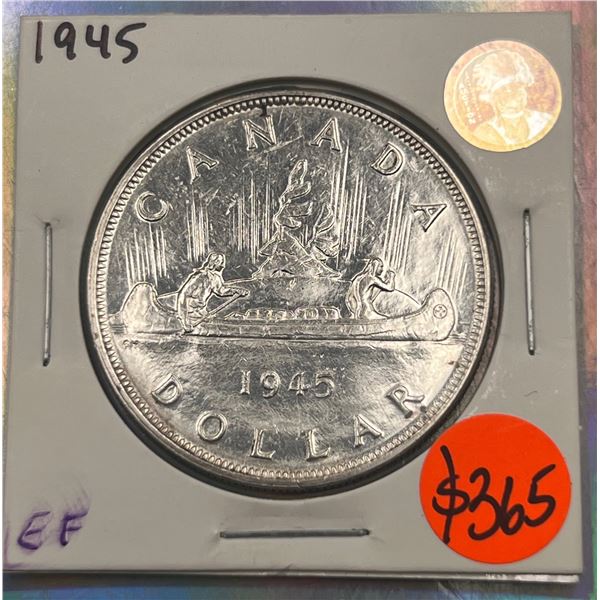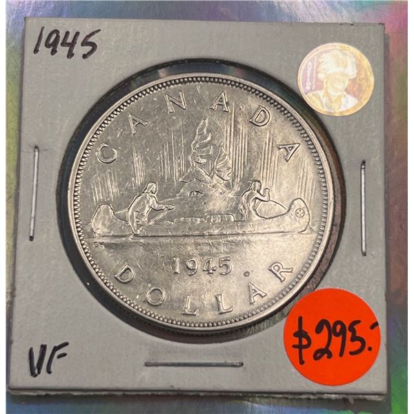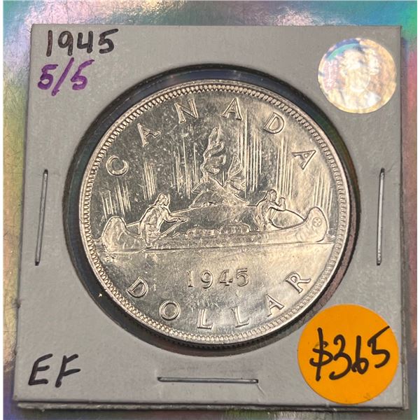 1945 Canada Silver dollar, REV 002, 4/4, 5/5 VF