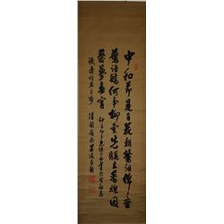 Hanging scroll, Chinese script calligraphy, ink on paper; inscribed and signed with one seal; 99.5 cm x 29 cm