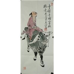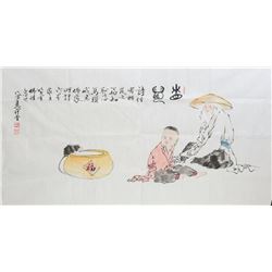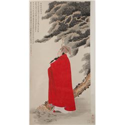 Scholar and child; Chinese ink and watercolour on paper; hanging scroll; signed Pu Ru and inscribed with two artist seals; 103 cm x 37 cm