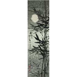 Bamboo and moon; Chinese ink and watercolour on paper; hanging scroll; signed Wang Chengxi and inscribed with two artist seals; 105 cm x 32 cm