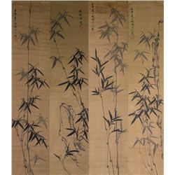 Bamboo Trees, Chinese ink and watercolour on paper; set of four hanging scrolls; signed and inscribed with artist seals; 92 cm x 22 cm (each)