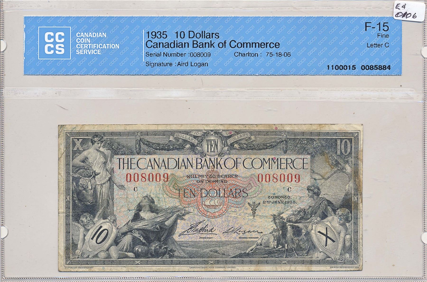 CANADIAN BANK OF COMMERCE 1935 75-18-06 $10.00 /N 008009 CCCS Banknote F-15