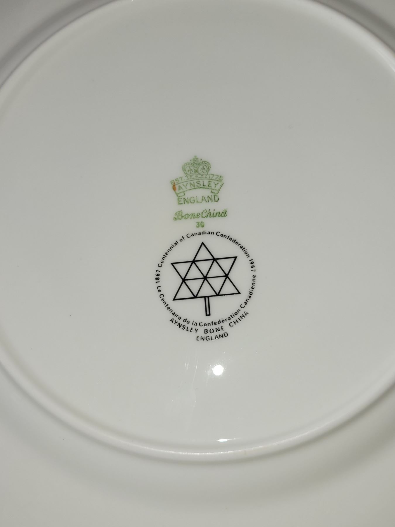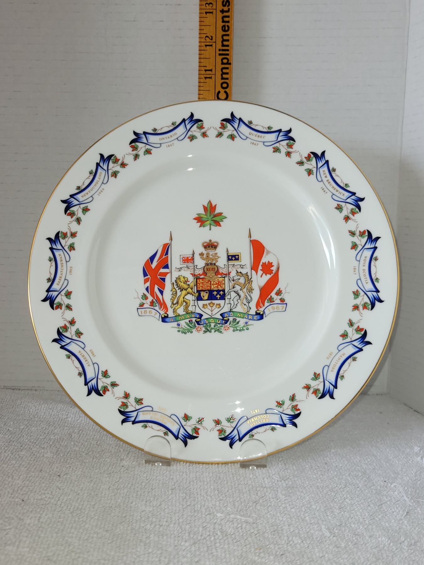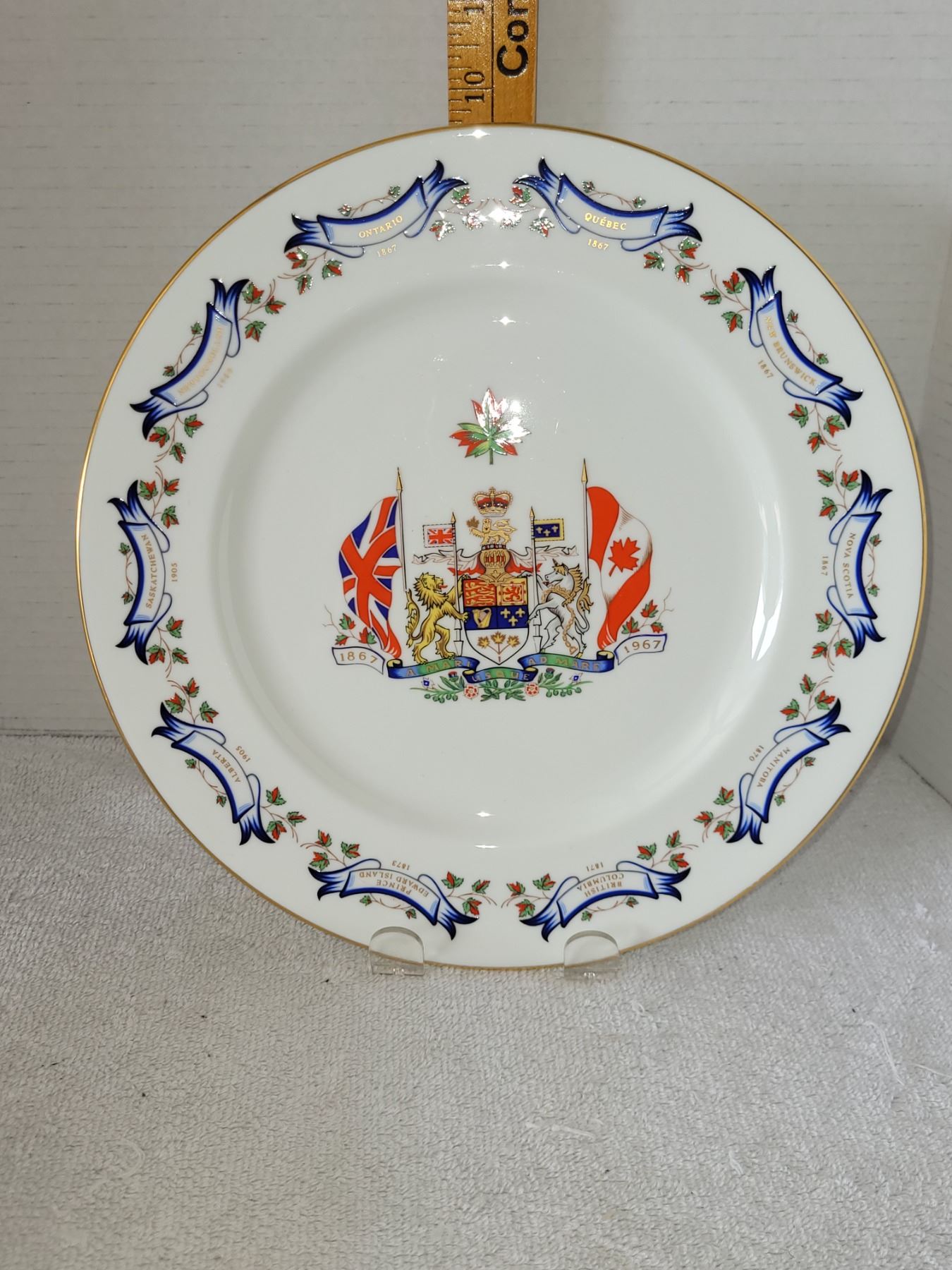CANADIAN CENTENNIAL PLATE 1867-1967 AYNSLEY BONE CHINA. MEASURES 10.25"