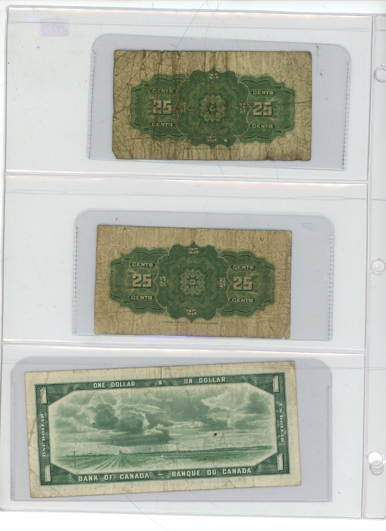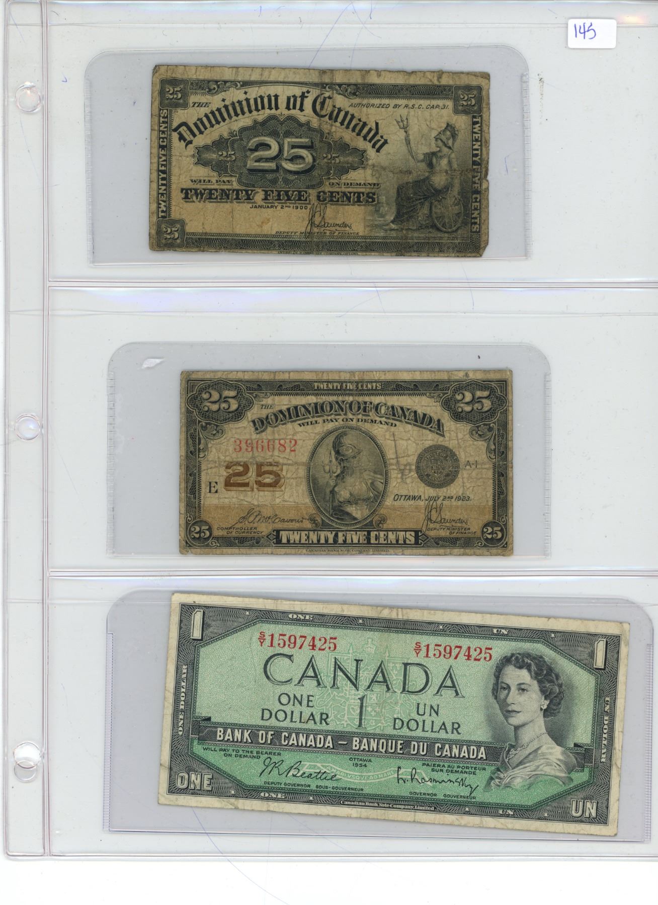 CANADIAN CURRENCY 2 X 25 c 1900/1923. 1954 1$ BILL