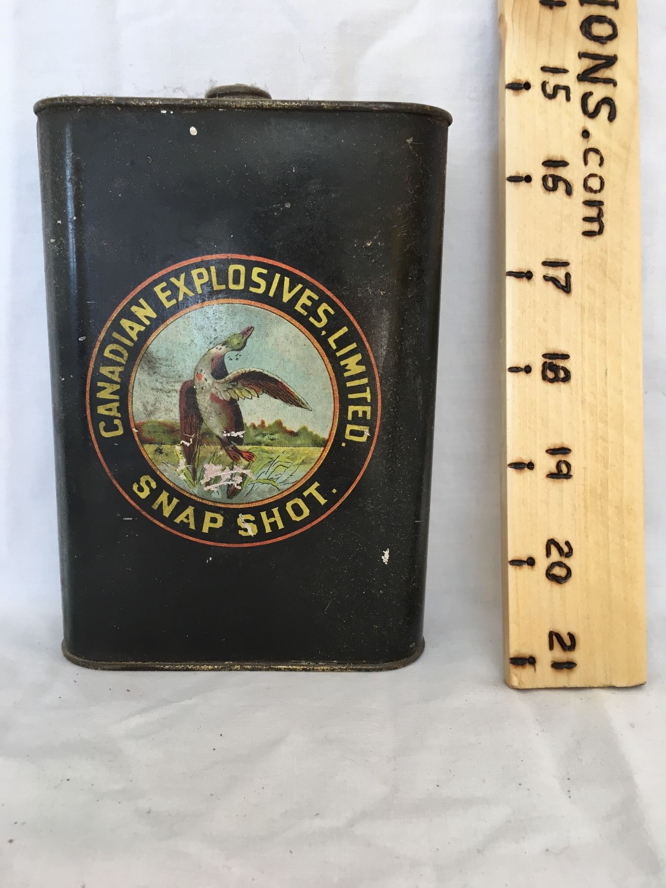 CANADIAN EXPLOSIVE LTD TIN, SNAP SHOT, ANTIQUE