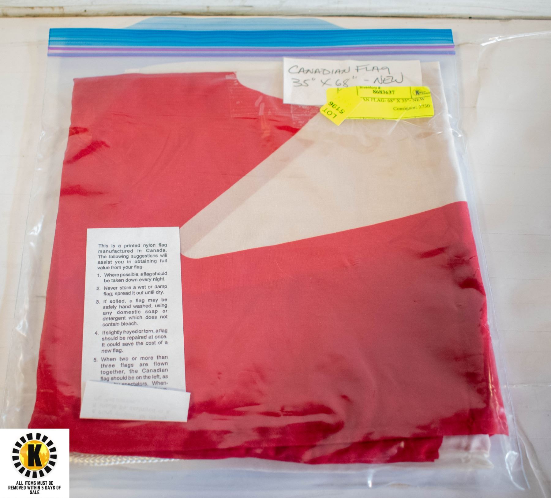 CANADIAN FLAG- 68" X 35"- NEW