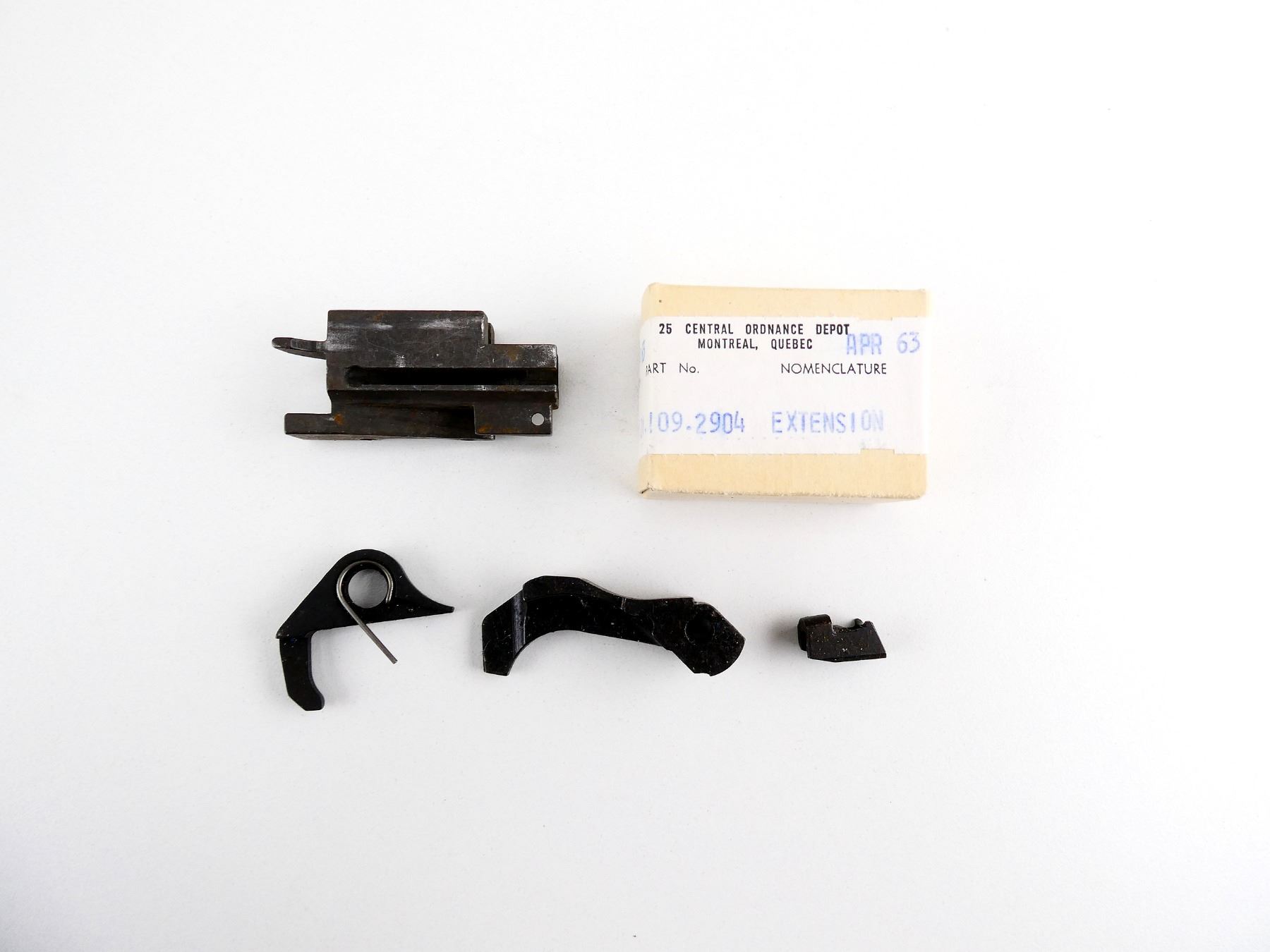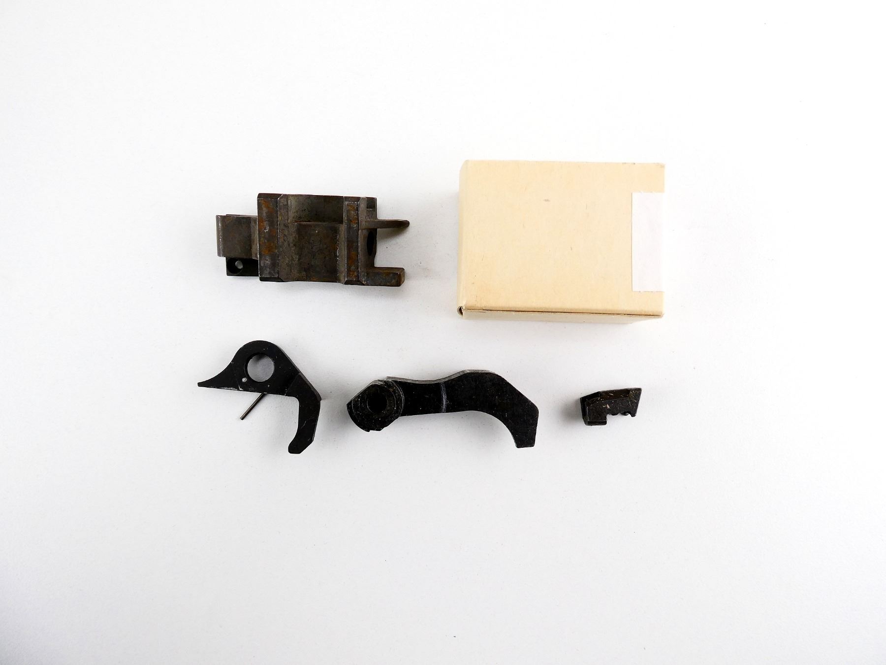 LOT INCLUDES; EJECTOR BLOCK, SAFETY SEAR, EXTRACTOR, HAMMER, NOS BOX OF FIRING PIN EXTENSIONS, ETC. MAY REQUIRE FITTING. SEE PHOTOS.