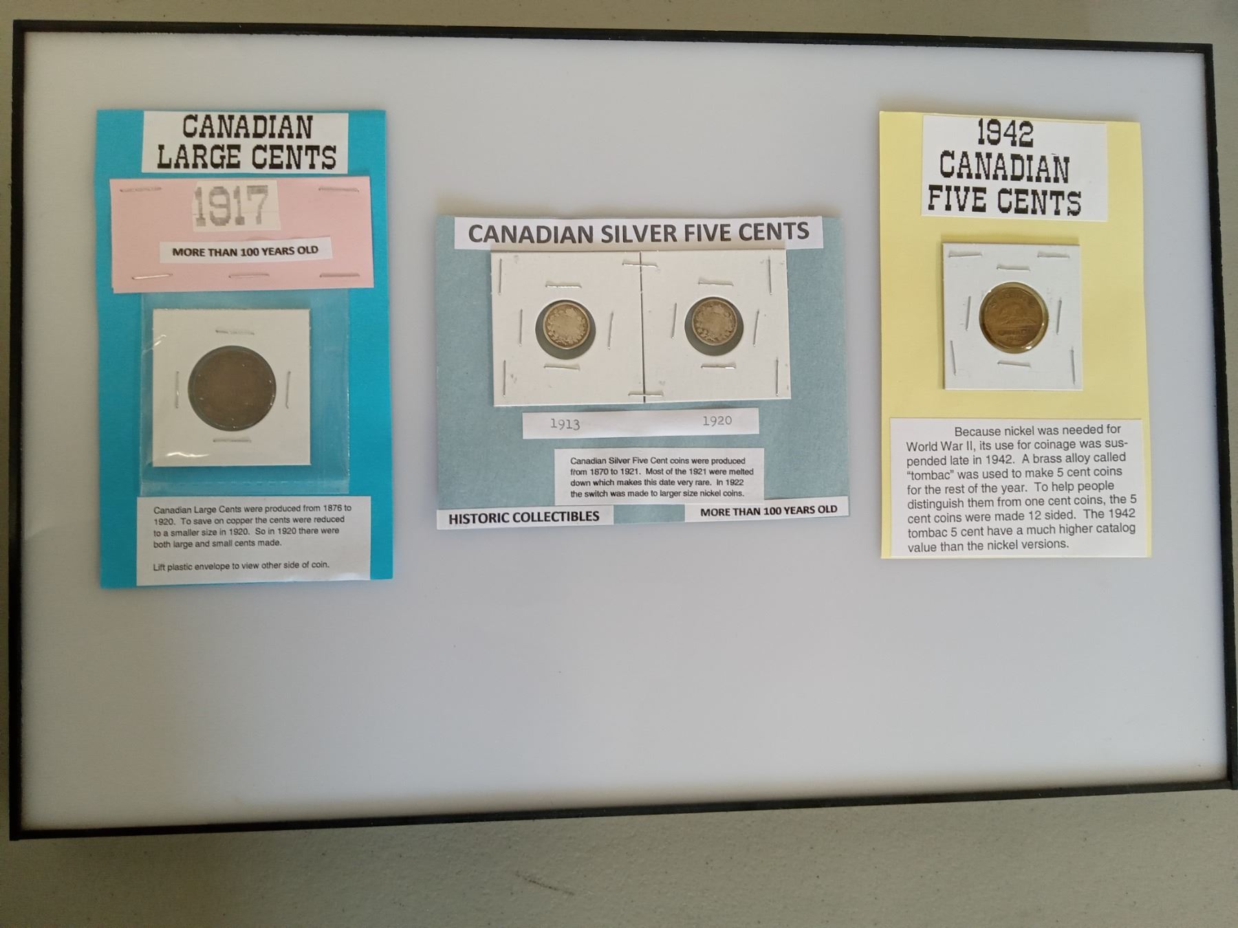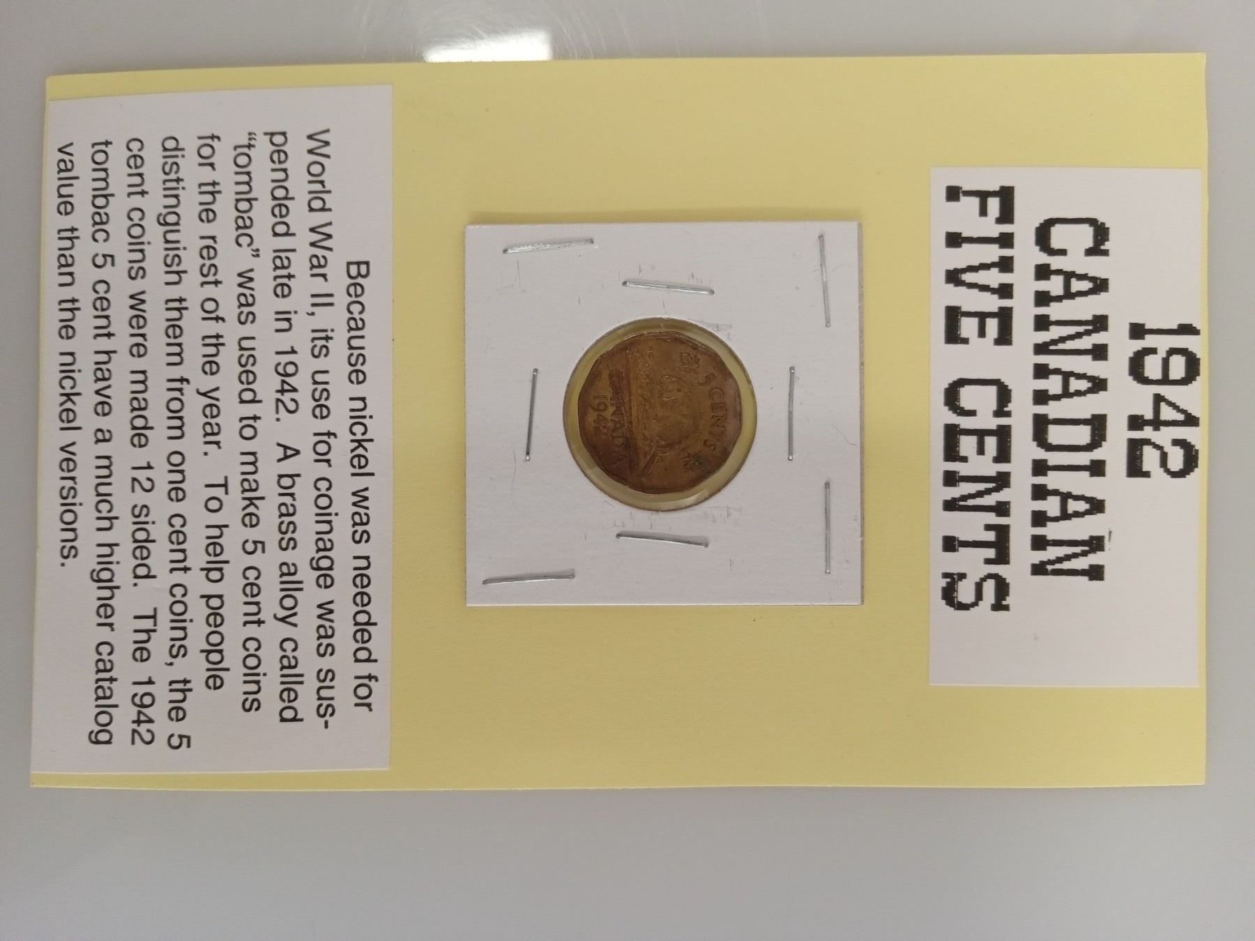 CANADIAN 'LARGE' CENT (1917); CANADIAN 'SILVER' .05¢ (five cent) - HISTORIC COLLECTIBLE ( 1913 & 1920);12 SIDED WWII - CANADIAN 'TOMBAC' .05¢ (five cent - 1942)