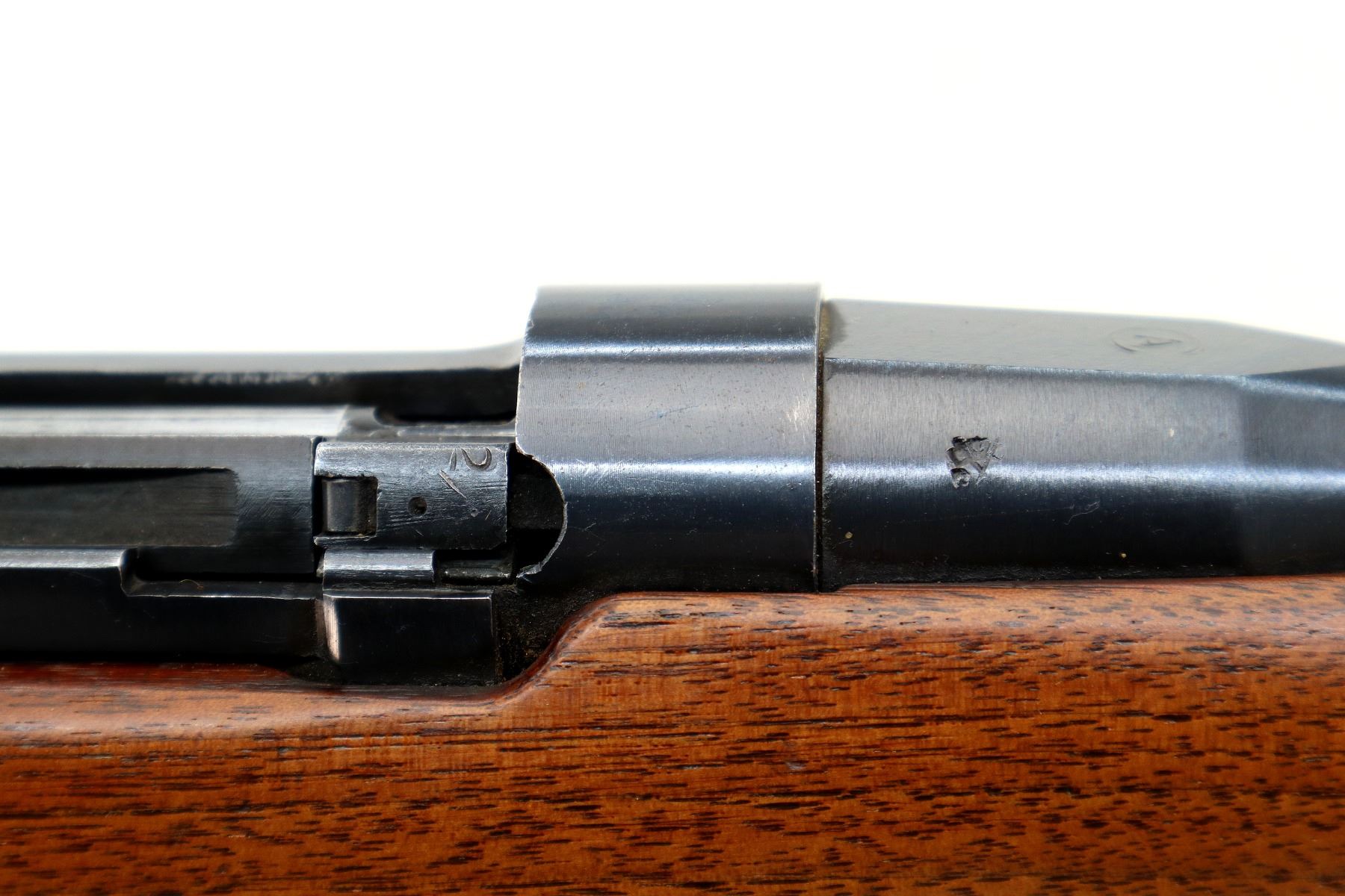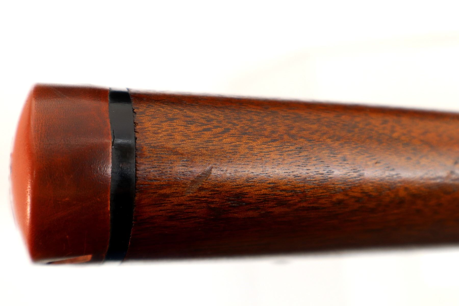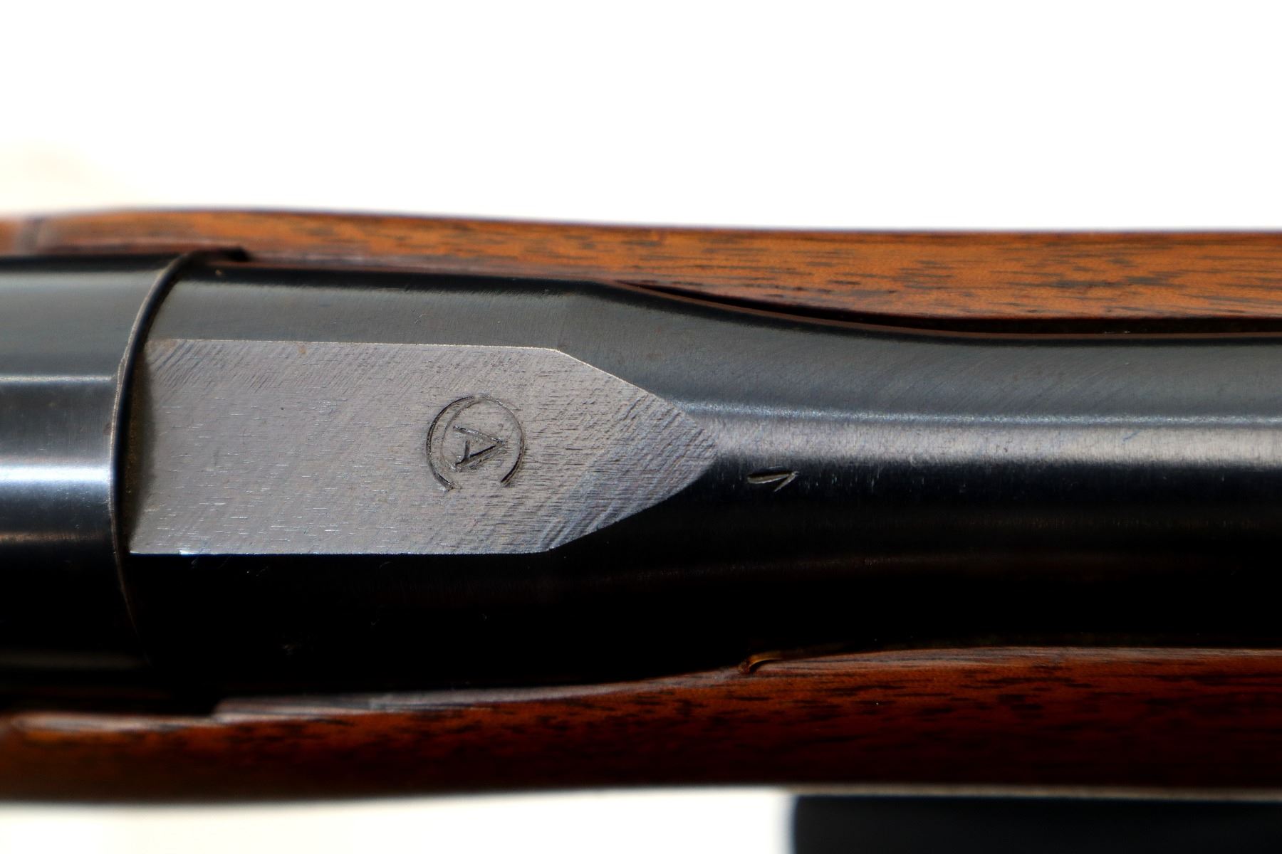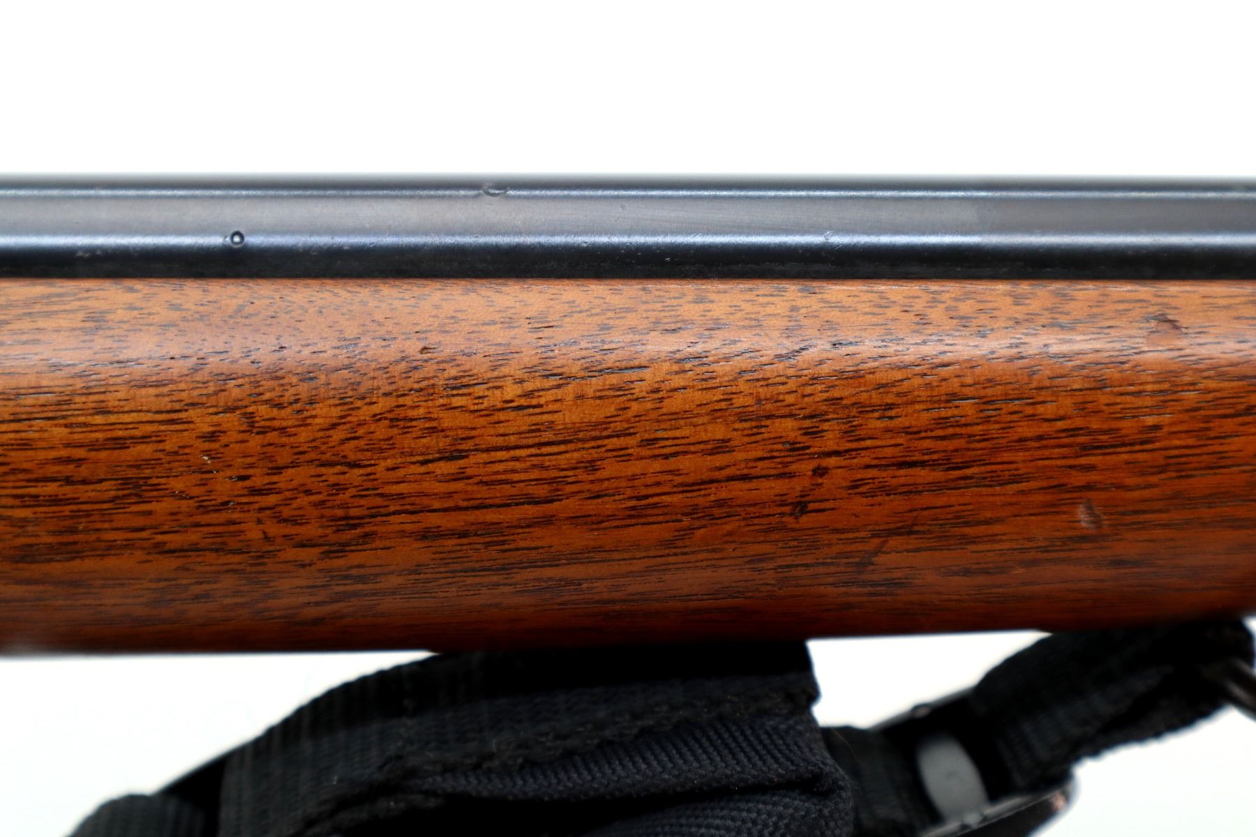 Main Description: Blade front sight with ramp, Two position L-flip rear sight, blued finish, no receiver bridge. Two piece sporter wood stocks, pistol grip, red vented Jostam recoil pad, sling swivels with black nylon sling.