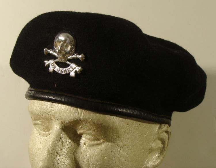 CANADIAN MILITARY BASQUE BERET-7 1/8-1952-REGIMENTAL INSIGNIA SKULL/CROSSBONES * INSIGNIA "OR GLORY" WITH SILVER SKULL & CROSSBONES--INSIDE READS "GENUINE FLEUR DE LIS-BASQUE BERET-7 1/8-1952-DOROTHEA KNITTING MILLS LTD-TORONTO W/CIRCLE & BROAD ARROW *
