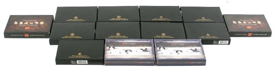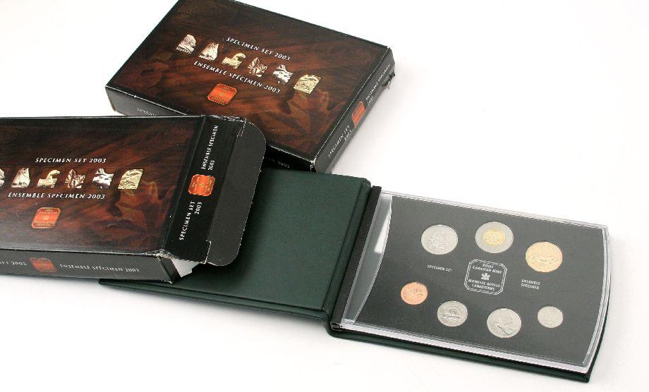 A lot of 13 Royal Canadian Mint Specimen sets 2003 to 2008 with some duplication of years. Grouping consists of: (2)2003,(2)2004, (2) 2005, (3)2006, (2) 2007 and (2) 2008. All are boxed as issued by the mint.