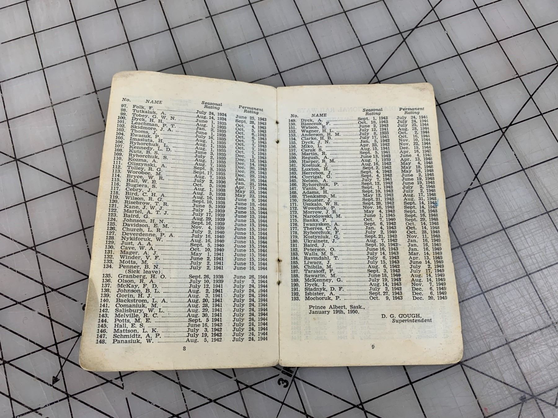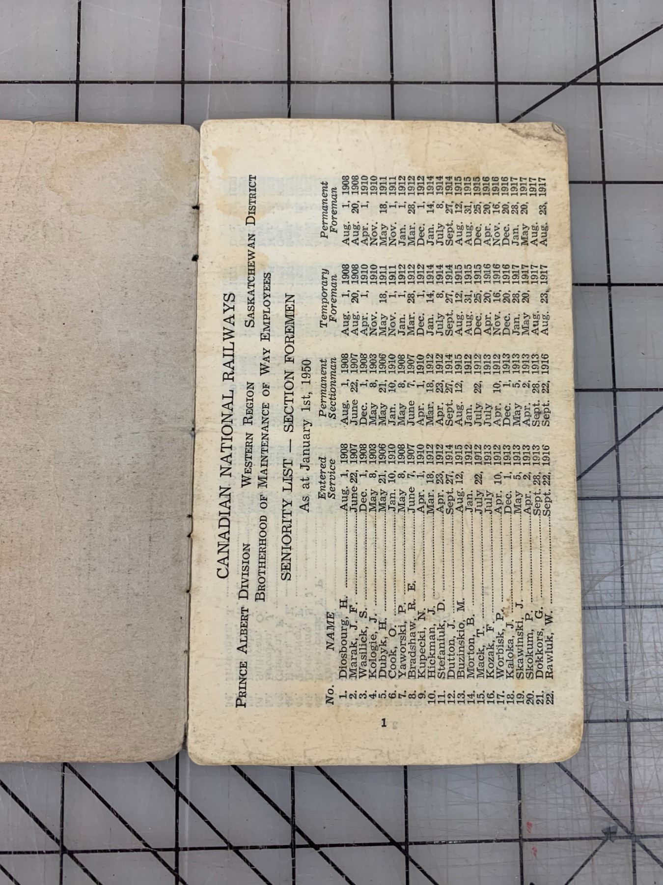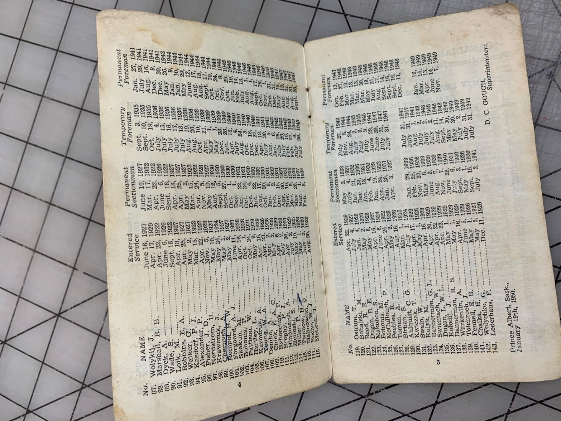 CANADIAN NATIONAL RAILWAY 1950 SENIORITY LIST HANDBOOK PRINCE ALBERT