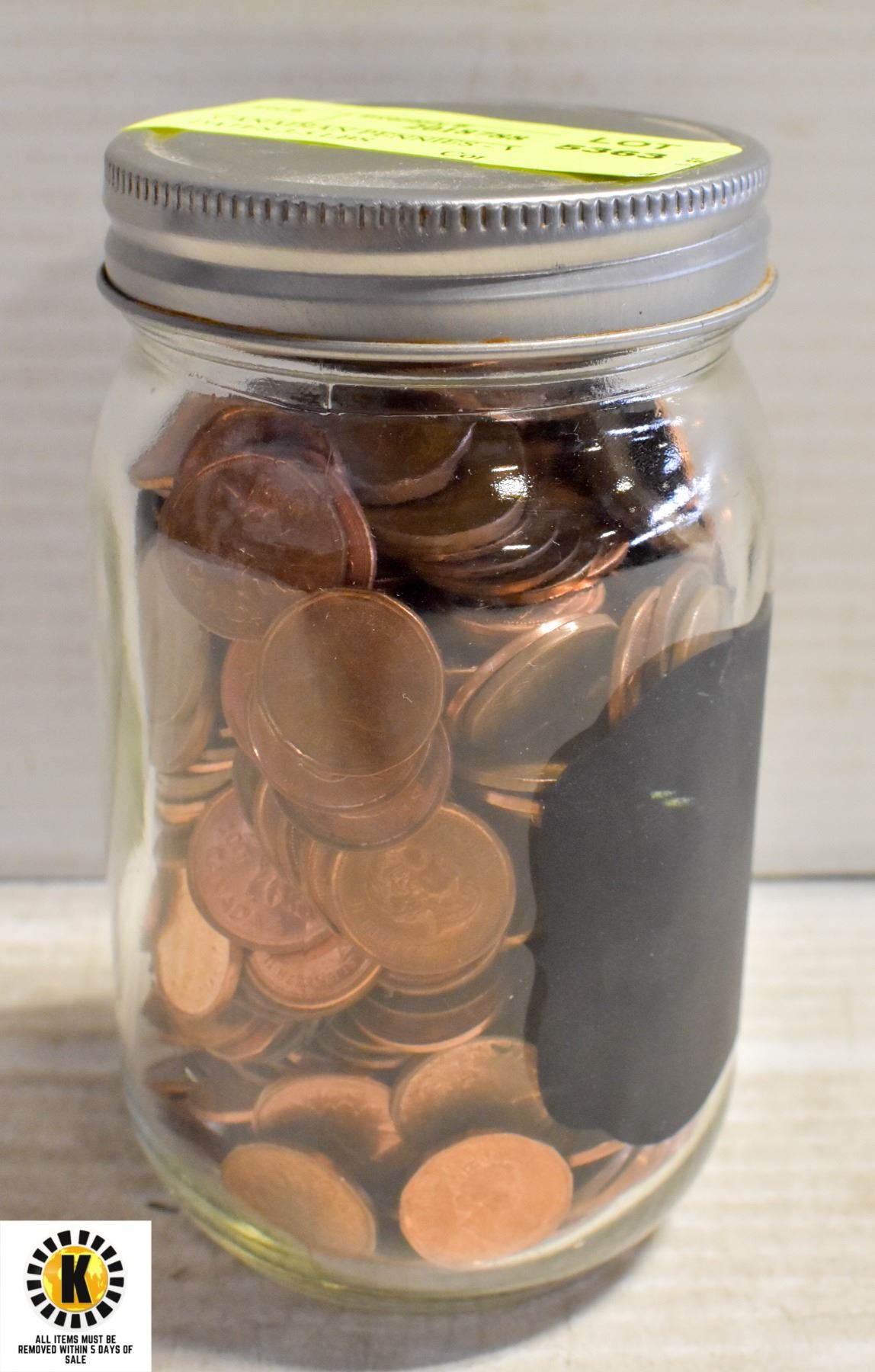 JAR OF CANADIAN PENNIES - VARIOUS DATES 3.5 LBS