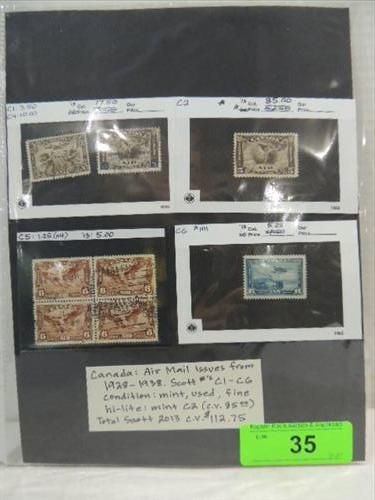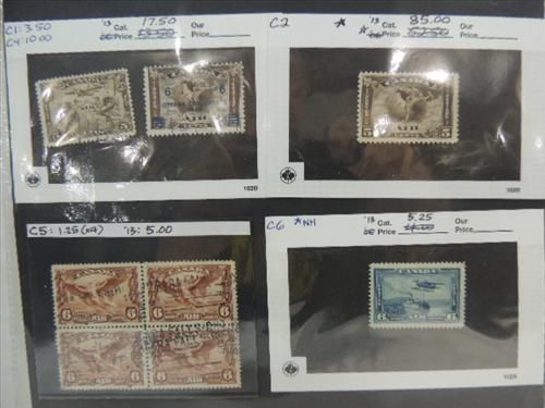 CANADIAN POSTAGE AIR MAIL SCOTTS #C1-6 ISSUES STAMPS. C-2 MINT (CV $85.00). CONDITION MINT & USED FINE. CV $112.75. AS SHOWN. VIEW PICTURE FOR DETAIL.