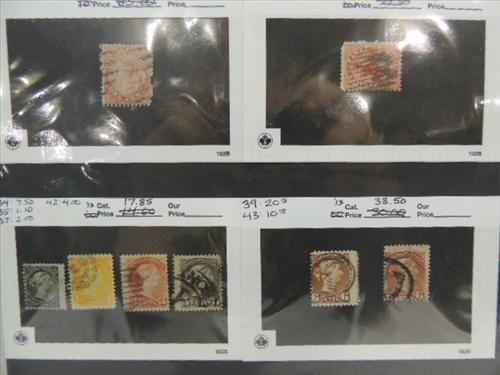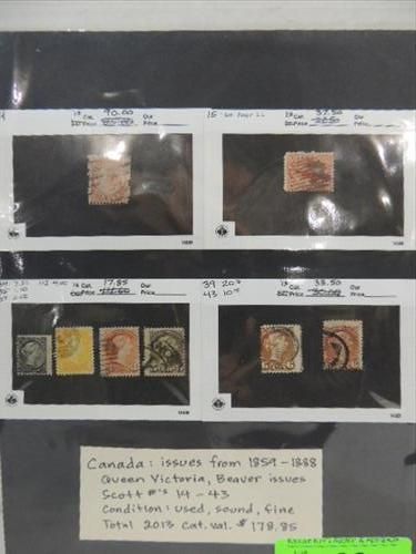 CANADIAN POSTAGE SCOTTS #14-43, 1859-88 QUEEN VICTORIA & BEAVER ISSUES STAMPS. CONDITION USED FINE. CV $178.85. AS SHOWN. VIEW PICTURE FOR DETAIL.