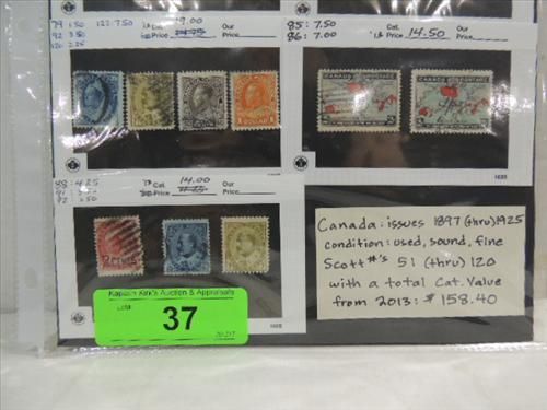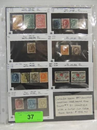 CANADIAN POSTAGE SCOTTS #51-120, 1897-1925 STAMPS. CONDITION: USED FINE. CV $158.40. AS SHOWN. VIEW PICTURE FOR DETAIL.