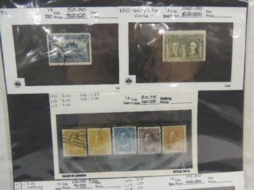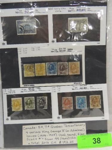 CANADIAN POSTAGE SCOTTS #99-120, 1908-25 STAMPS. 5 & 7 CENT QUEBEC, KING GEORGE V. CONDITION: USED FINE. CV $192.25. AS SHOWN. VIEW PICTURE FOR DETAIL.