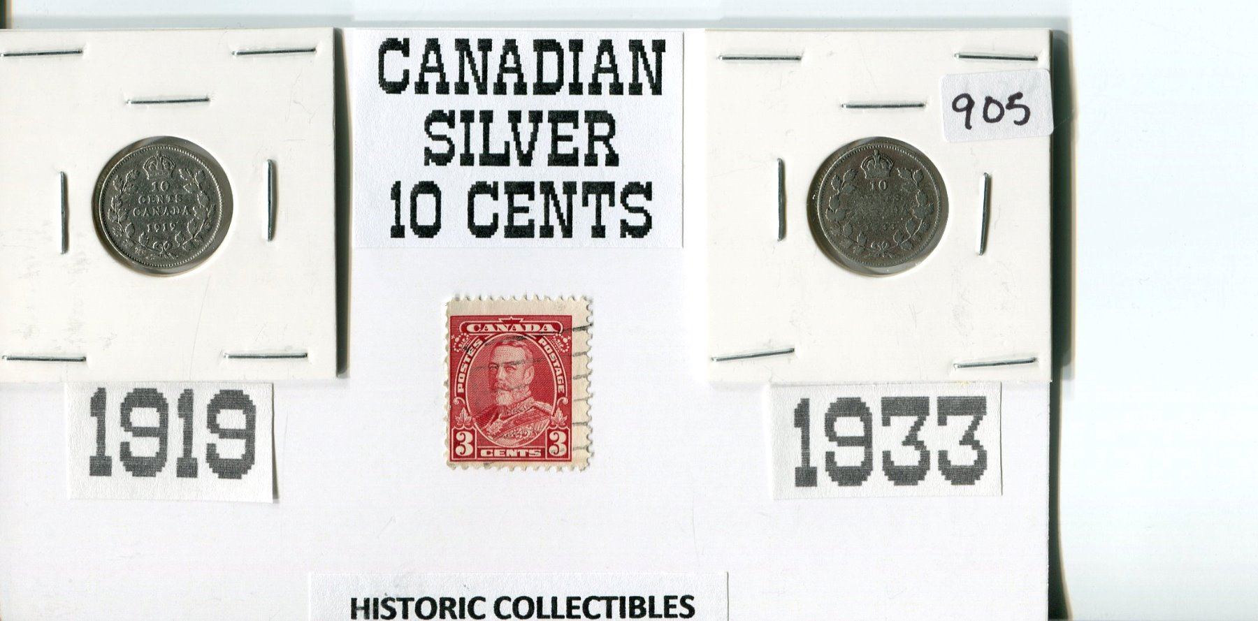 CANADIAN SILVER 10 CENTS- 1919 & 1933