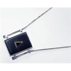 CANADIAN STERLING SILVER BOLO-STYLE NECKLACE, with a rectangular pendant fitted with an onyx beze...