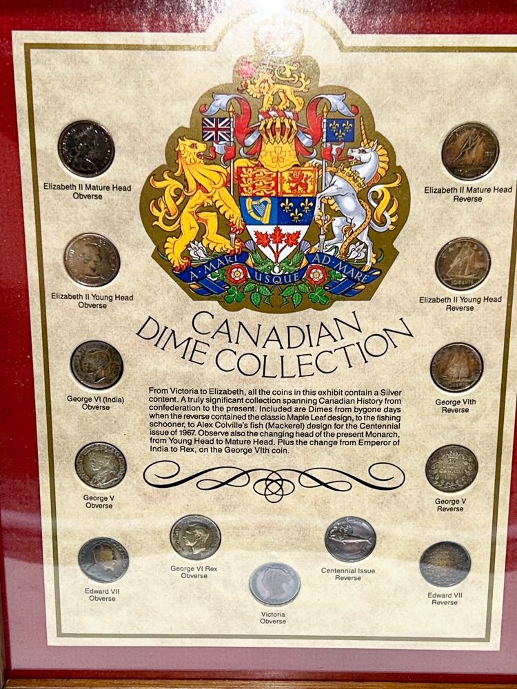 CANADIAN VINTAGE FRAMED SILVER DIME COLLECTION