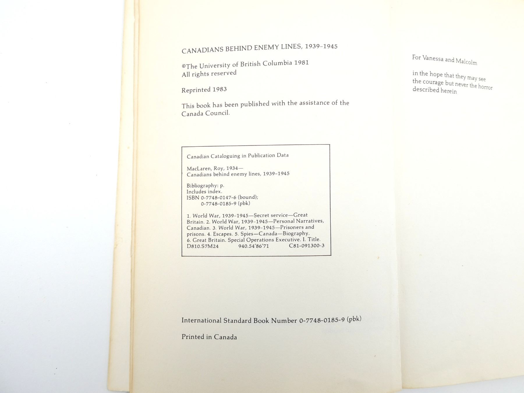 "CANADIANS BEHIND ENEMY LINES 1939-1945" BOOK