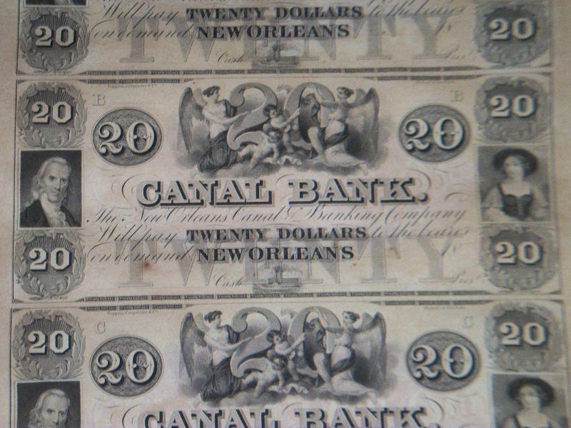 SHEET OF 4 $20.00 NEW ORLEANS CANAL NOTES