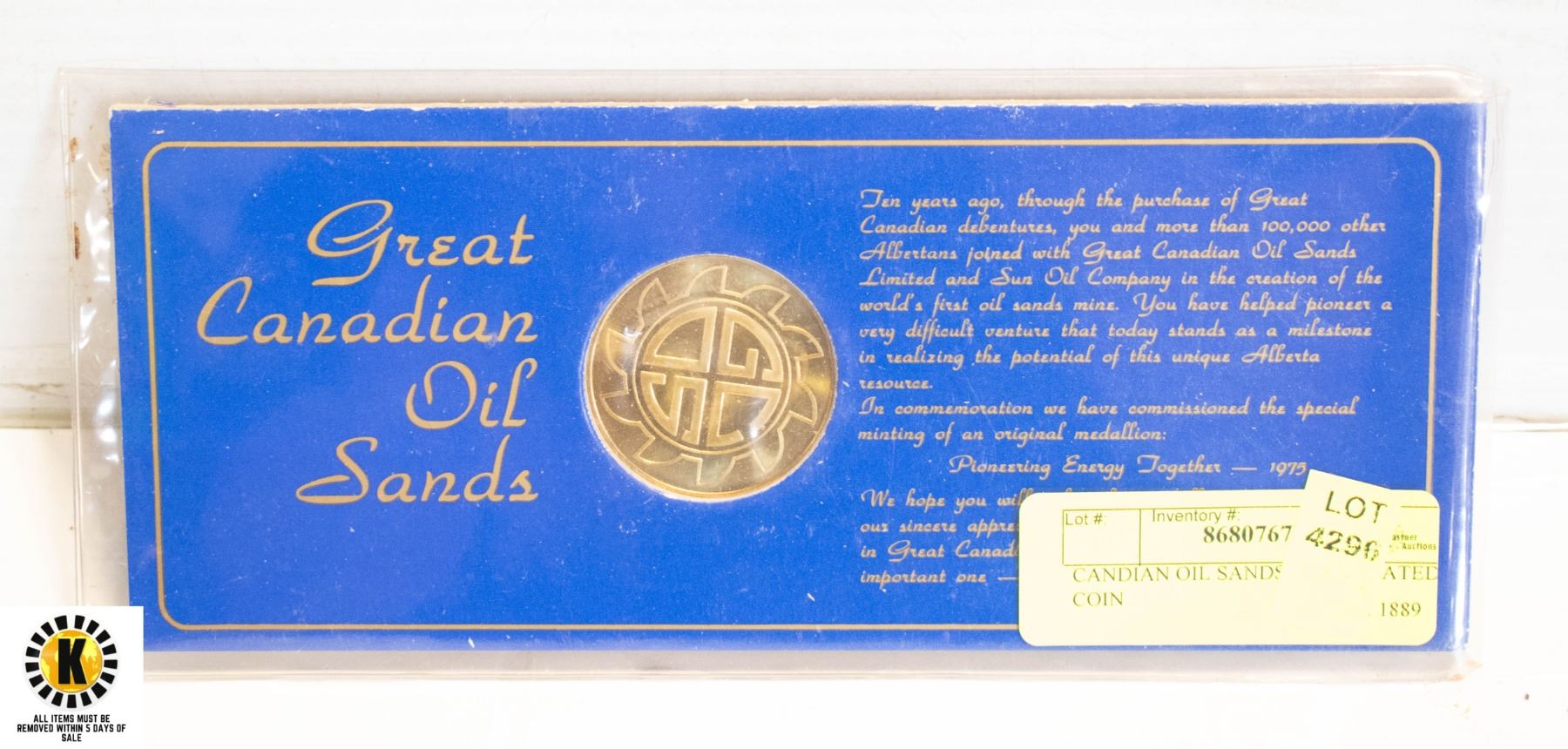 CANDIAN OIL SANDS GOLD PLATED COIN AND DISPLAY HOLDER