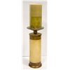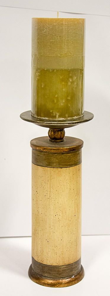 APPOX 5 INCHES WIDE X 12 INCHES HIGH. MATCHING CHANDLE 3.5 INCHES WIDE, 6 INCHES HIGH