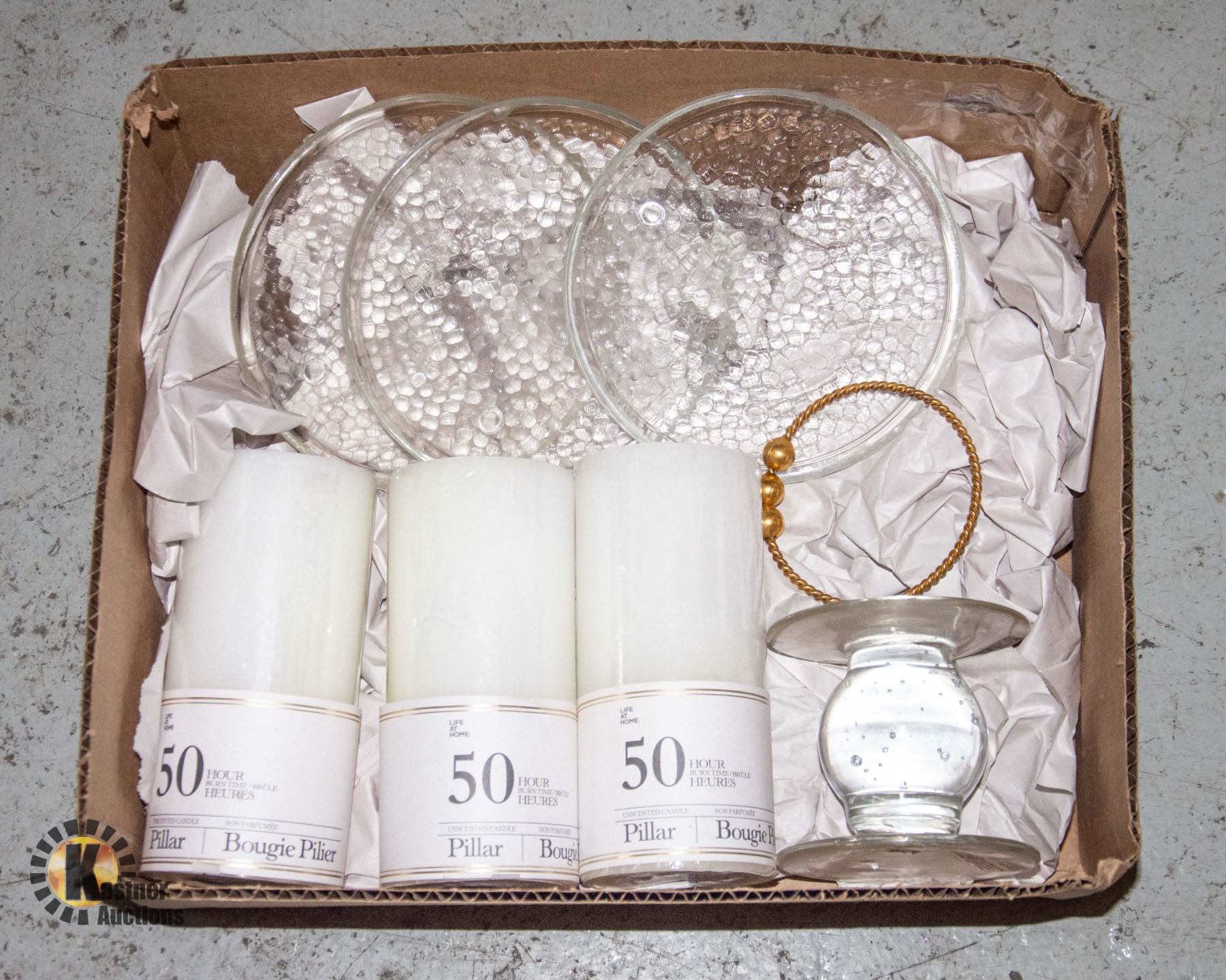 CANDLES & CANDLE HOLDERS- BOX LOT ASSORTED