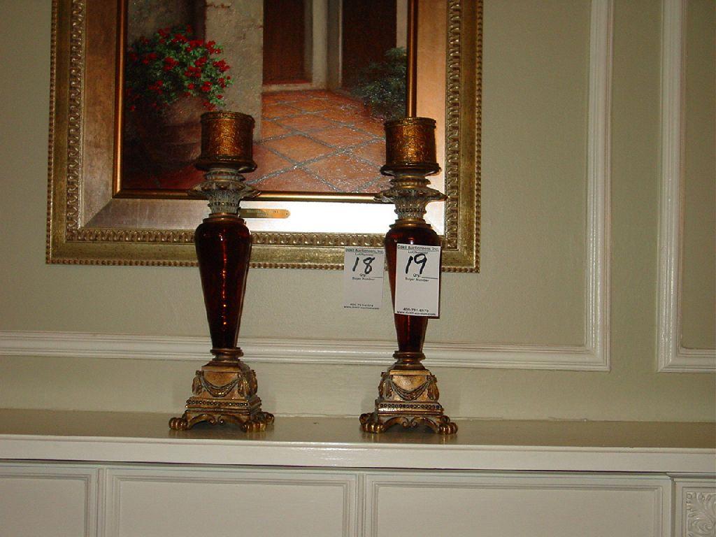 CANDLESTICKS GOLD AND AMBER GLASS (2X)