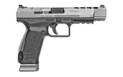 CANIK, TP9SFx, Striker Fired, Semi-automatic, Polymer Frame Pistol, 9MM, 5.2" Match Grade Barrel, Tungsten Grey, Warren Tactical Sights, 20 Rounds, 2 Magazines, Holster, Interchangeable Backstraps, Four Red Dot Interface Plates