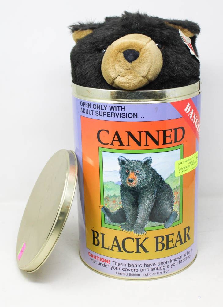 CANNED BLACK BEAR 12INCH PLUSH IN CAN