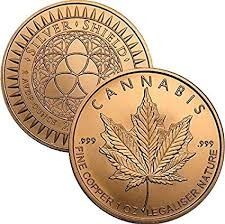 CANNIBIS 1oz Copper 999 Fine Copper Coin MS High Grade