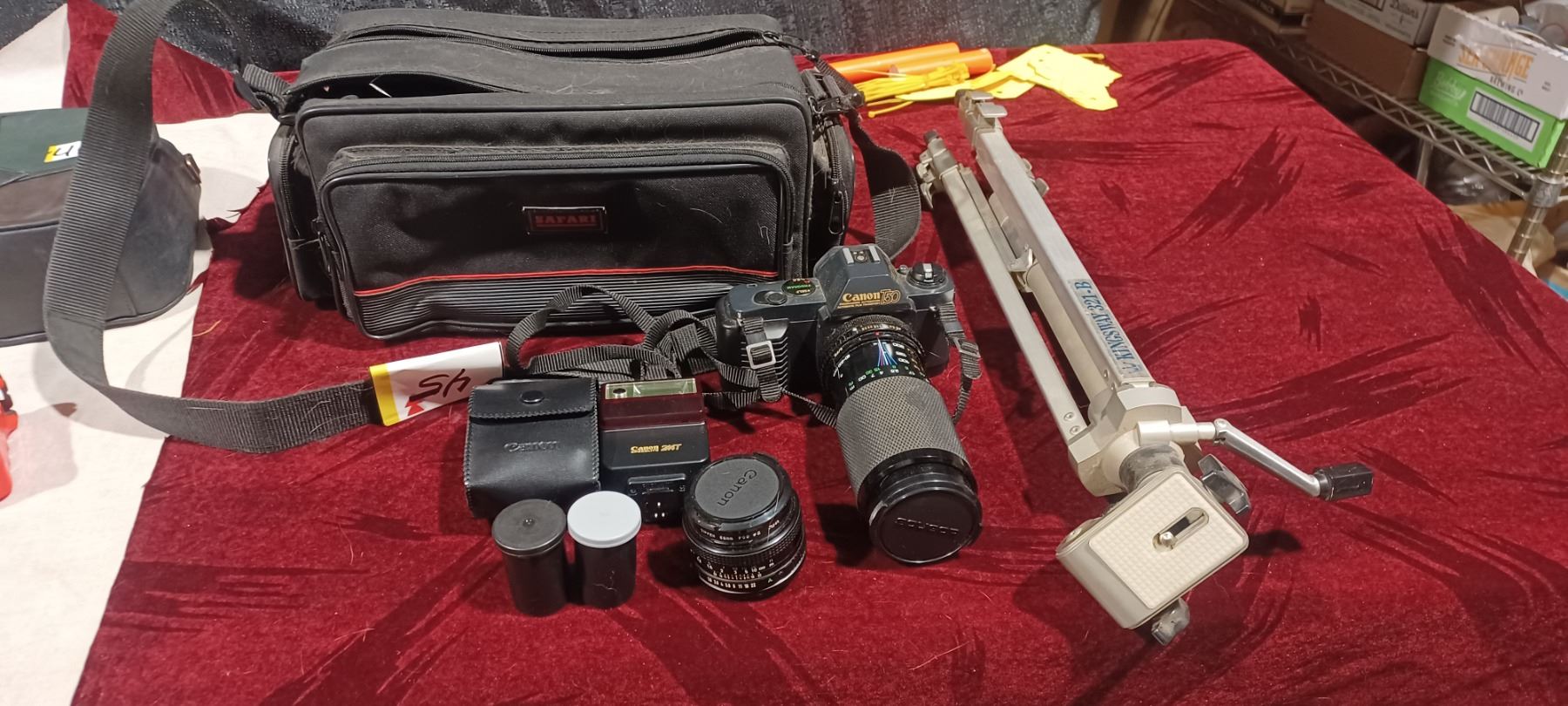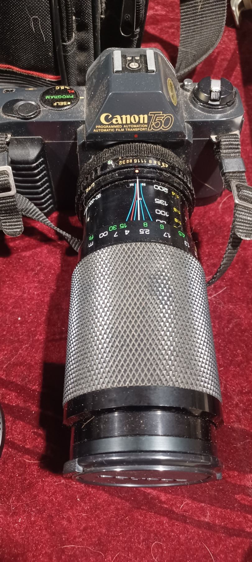 CANNON T50 CAMERA COMES WITH 80-200MM LENS, FLASH, 50MM LENS BAG.- TWO NEW ROLLS OF FILM AND TRIPOD