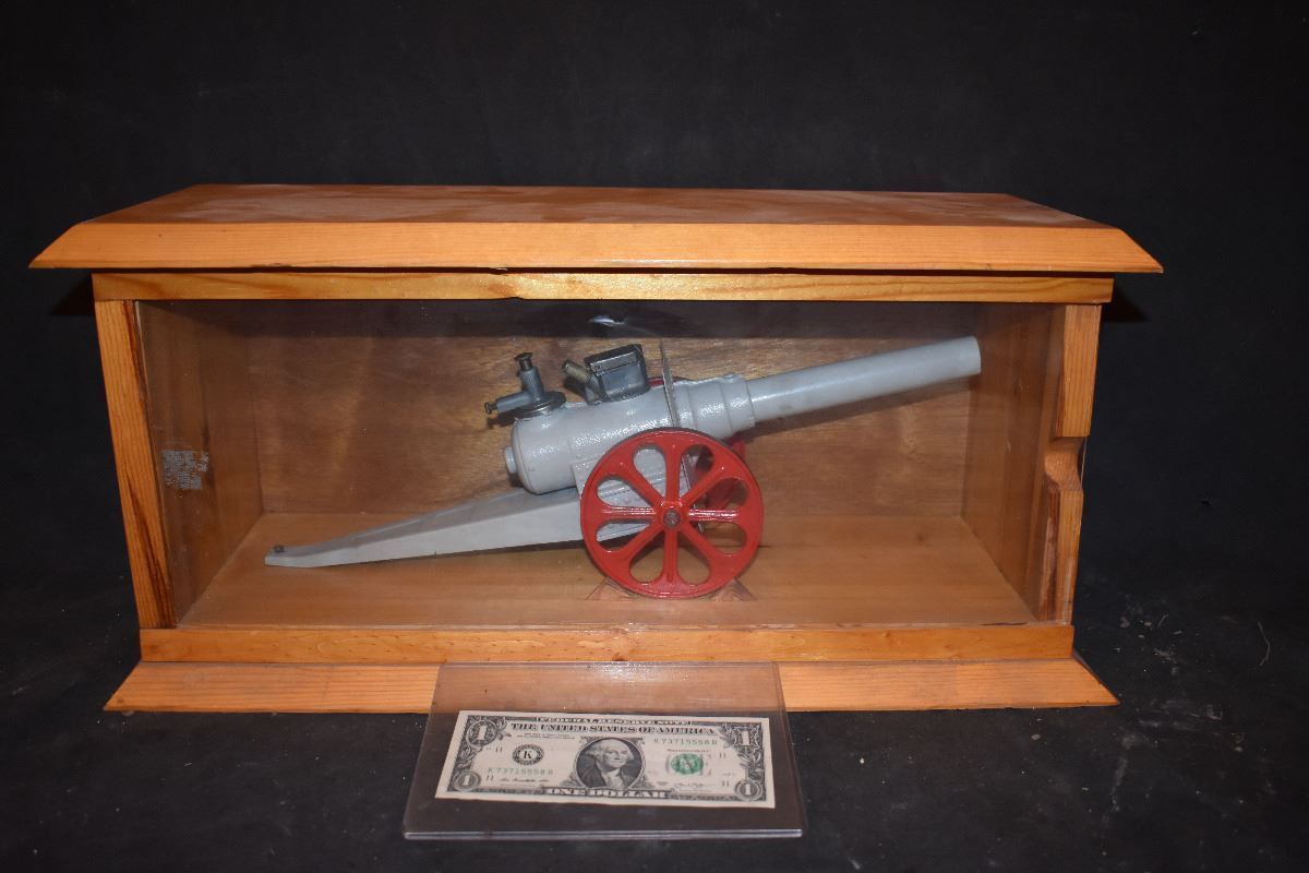 It is a real working cannon that can actually be fired though I am unsure how it works, or if it can actually fire a projectile. May just be a very cool and very loud noise maker. Makes an incredible display at any rate with solid wood and real glass display case.