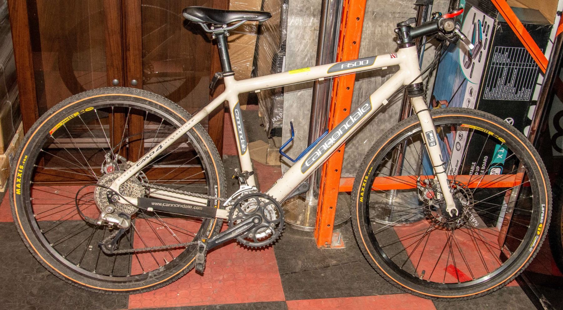 SHIMANO COMPONENTS, DISC BRAKES, QUICK DETACH FRONT AND REAR TIRES ALSO SEAT, SPEDOMETER, BELL, BOTTLE HOLDER, 26" WHEELS, COULD USE REAR TIRE