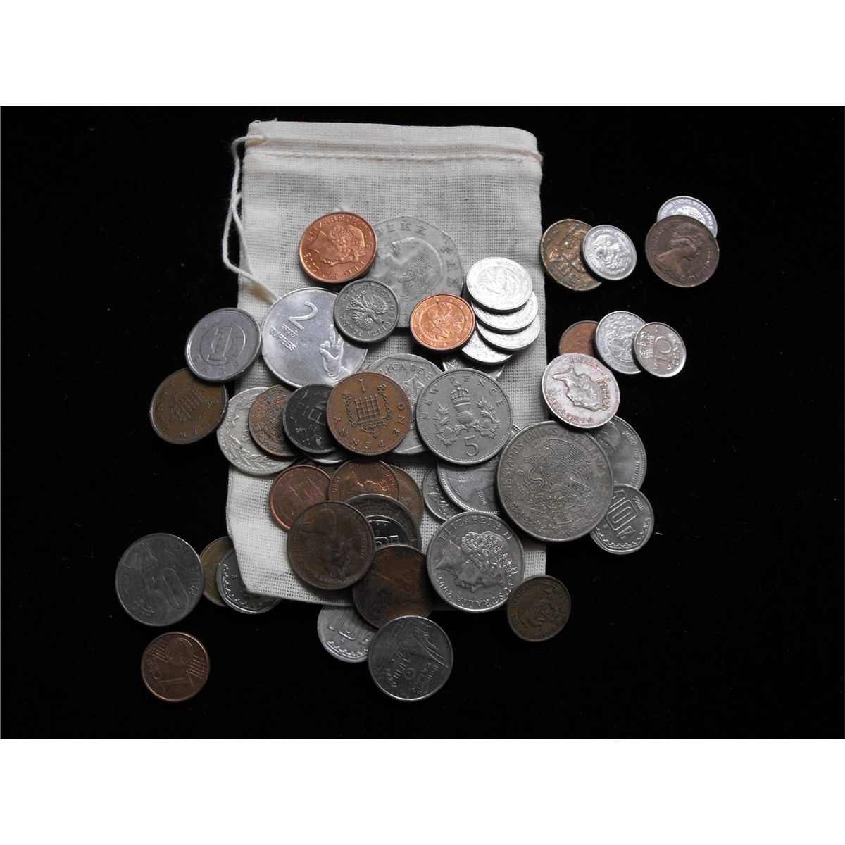 CANVAS BAG OF FOREIGN COINS