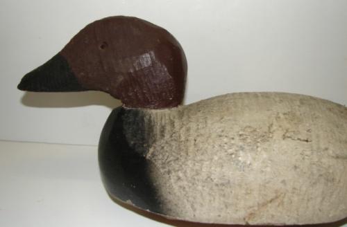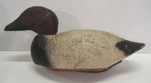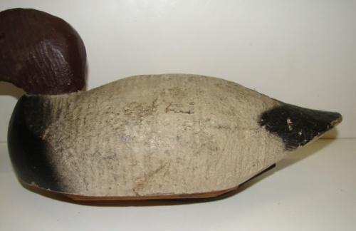 CANVASBACK DRAKE DECOY. Wooden hollow body. Lead weight is marked “NATIONAL”. 15.5” L