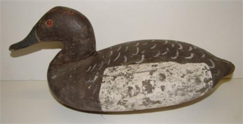 CANVASBACK HEN DECOY. Crudely painted. Has tack eyes. 15” L