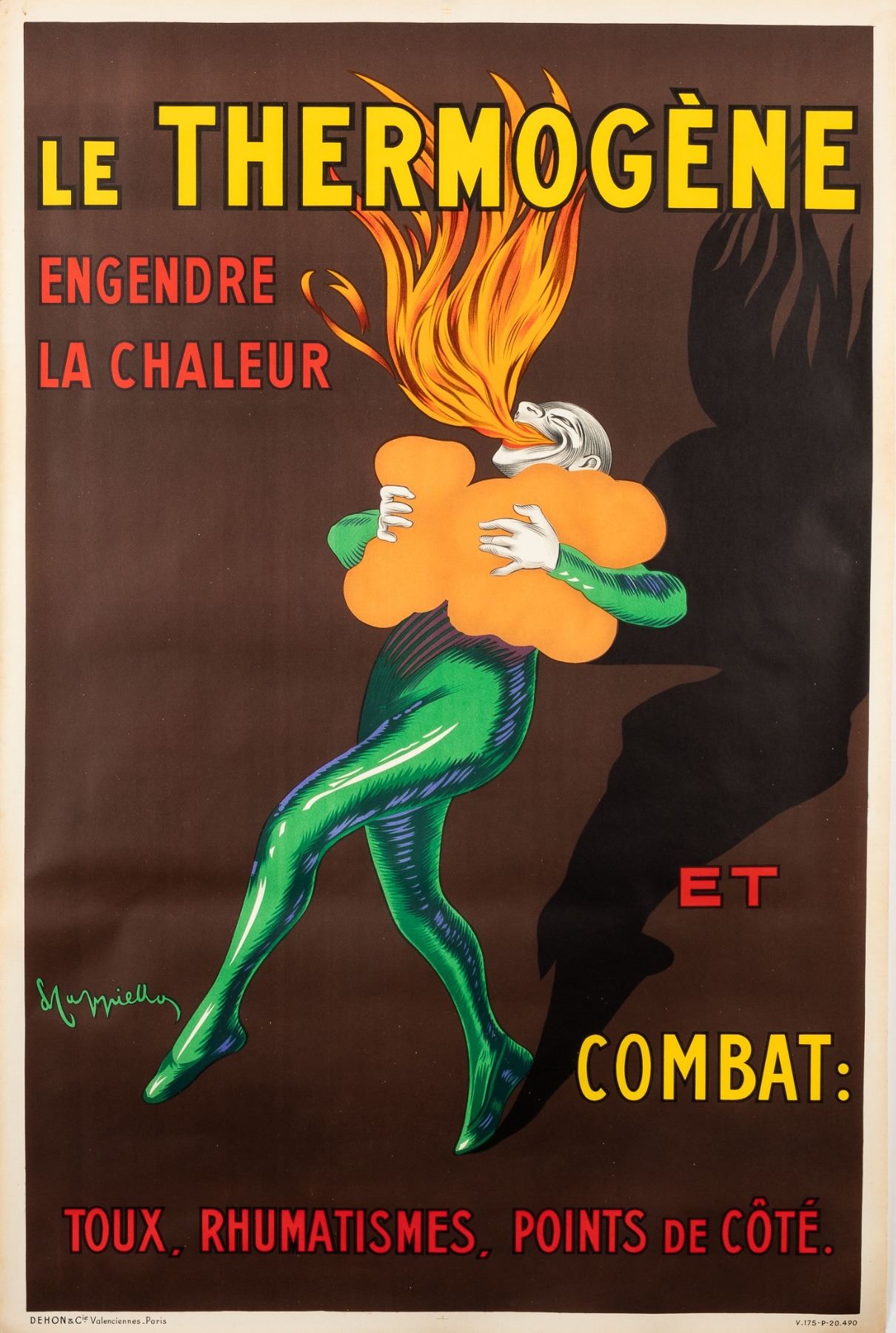 Leonetto Cappiello (1875-1942) 'Le Thermogene - Engendre La Chaleur', Dehon & Cie. Valenciennes - Paris, V. 175-P-20.490, 31.25 x 47 inches. 1-inch tear at bottom edge, else very good.