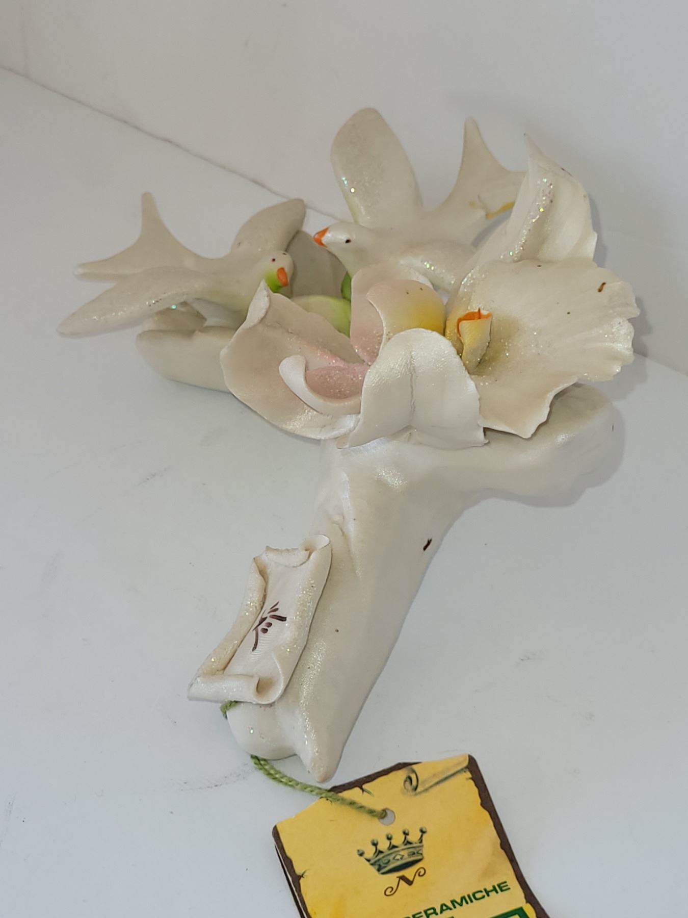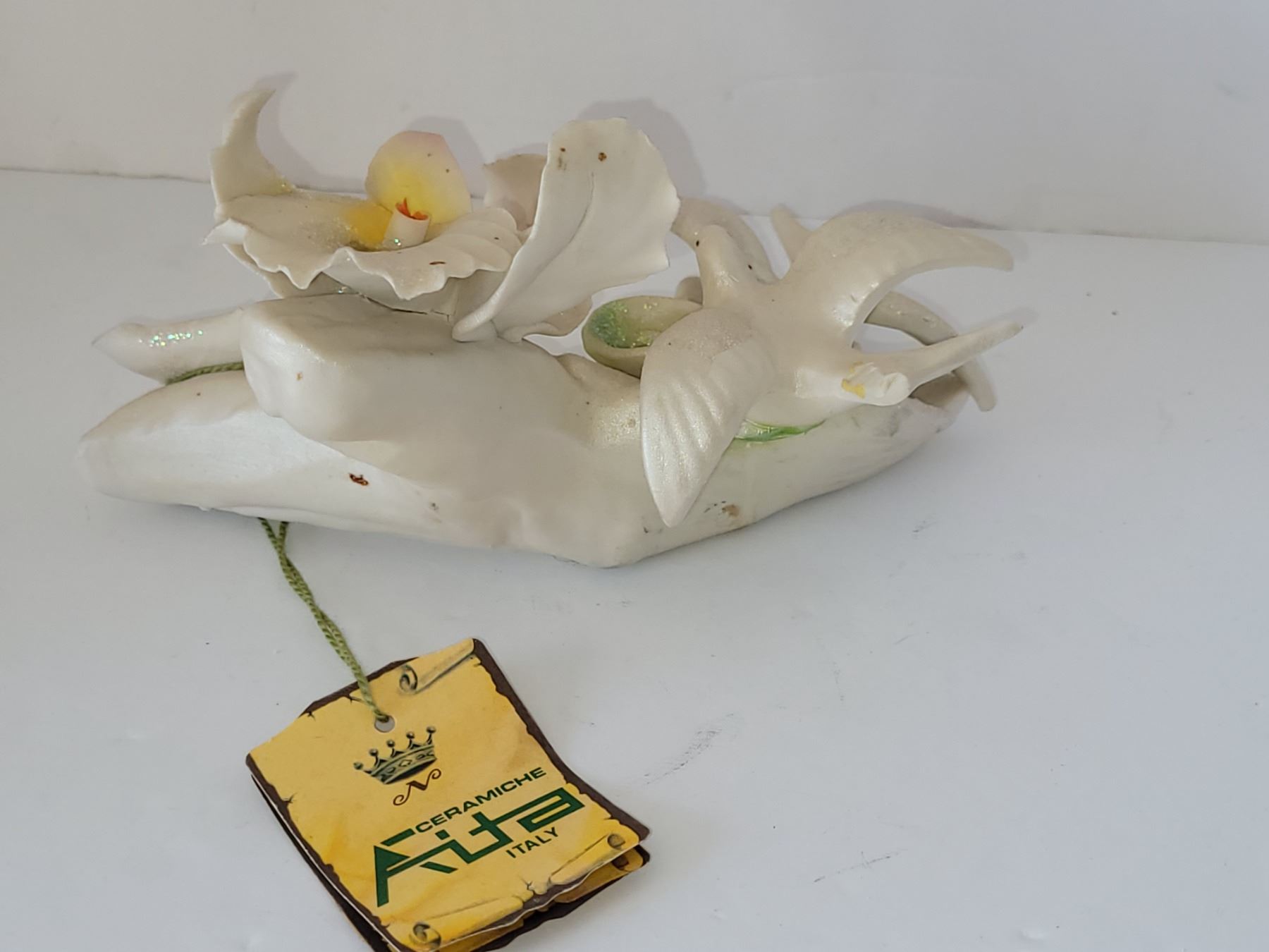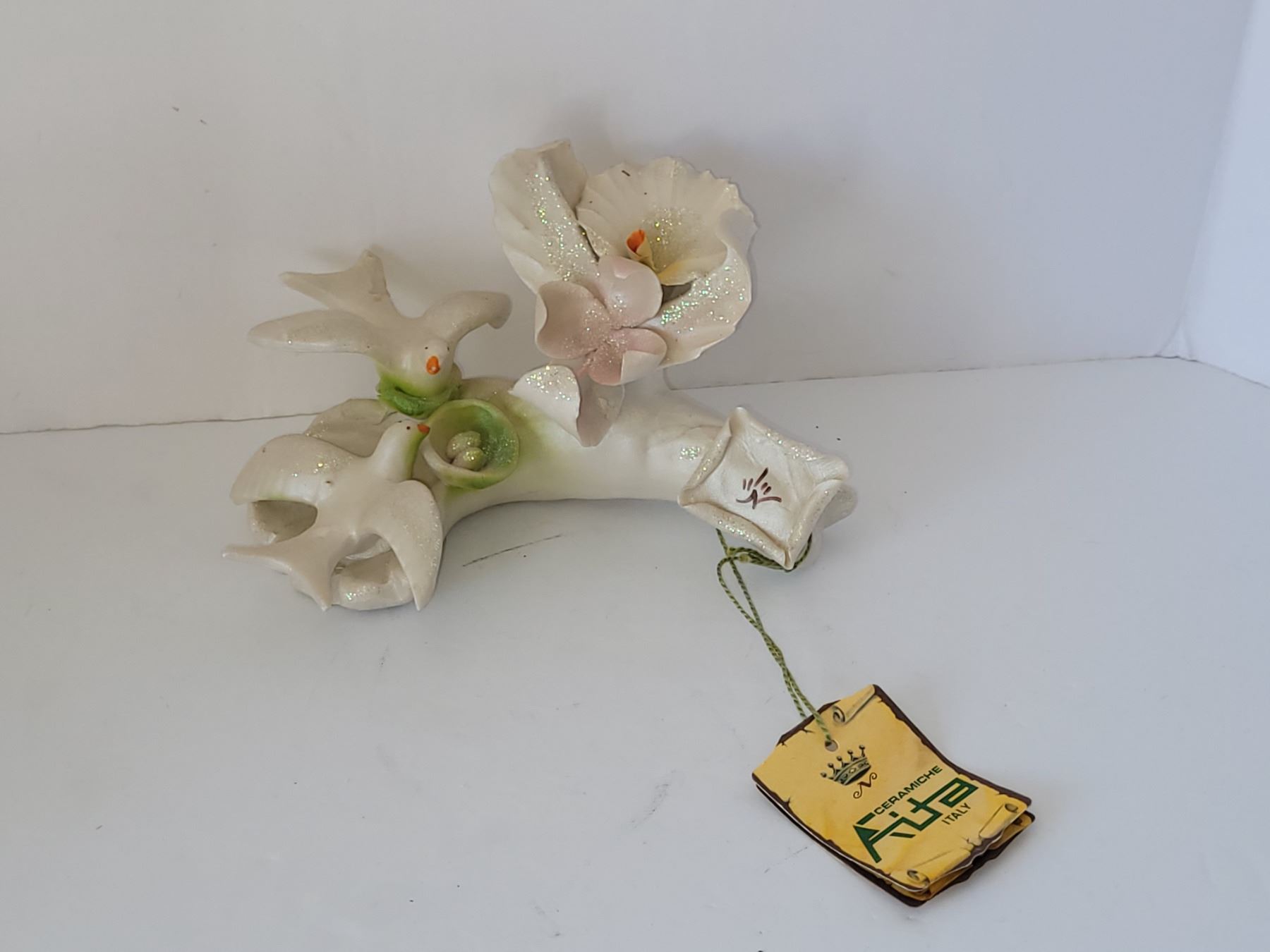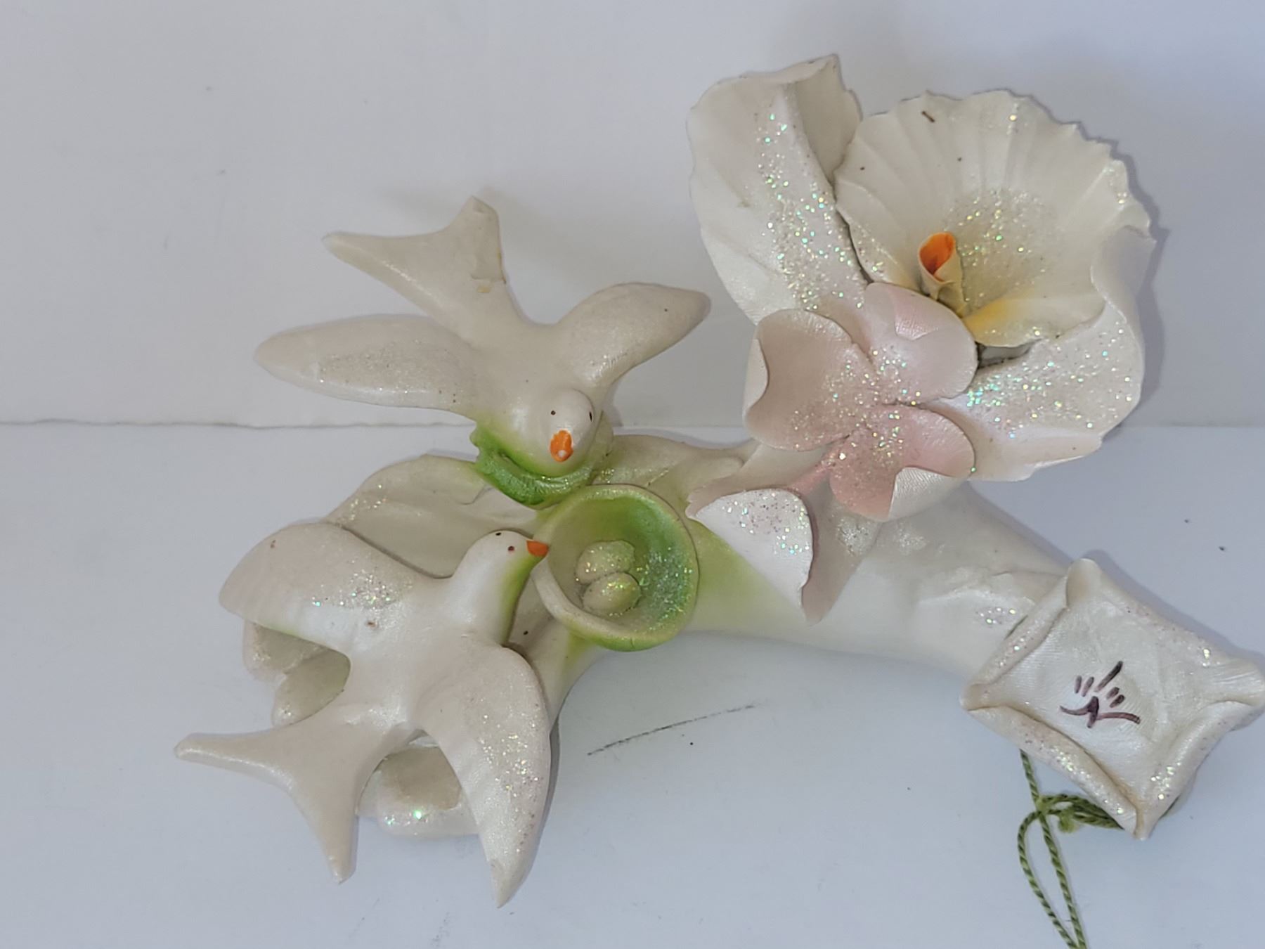 CAPODIMONTE DOVES ON A BRANCH WITH TAG 7" X 3". SEE PICTURES