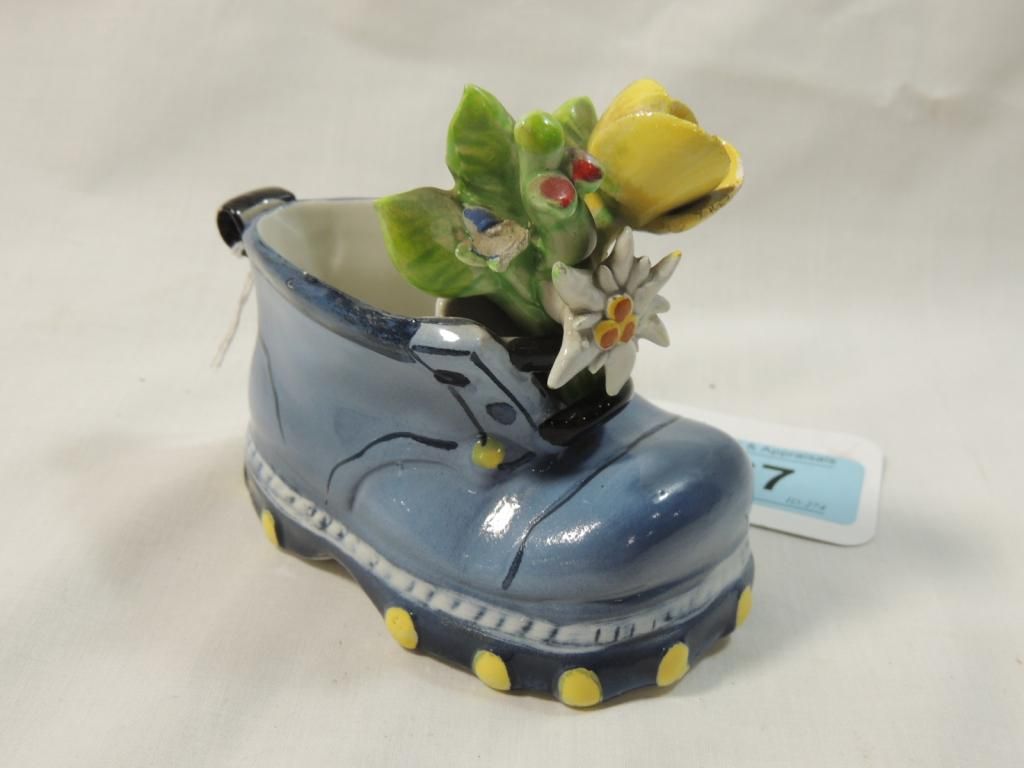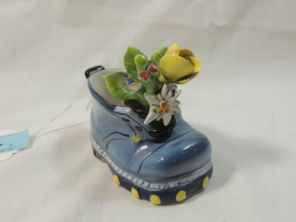 BLUE BOY BOOT WITH FLOWERS CAPO DE MONTE ITALY. AS SHOWN. SEE PHOTO FOR MORE DETAILS.