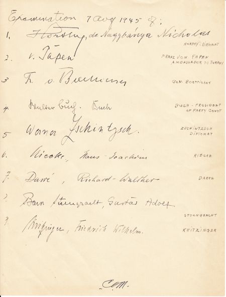 The first signatures of Nazi war criminals, gathered as they underwent psychiatric examinations in Luxembourg…with their comments made upon the surrender of Japan