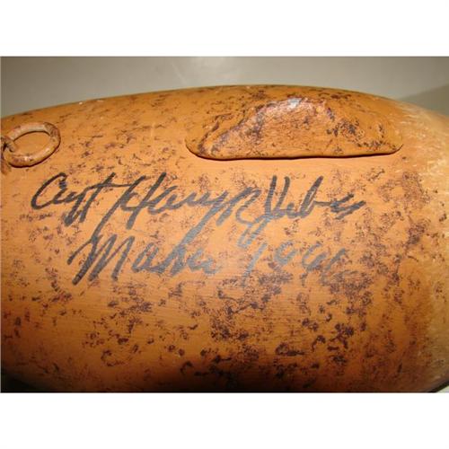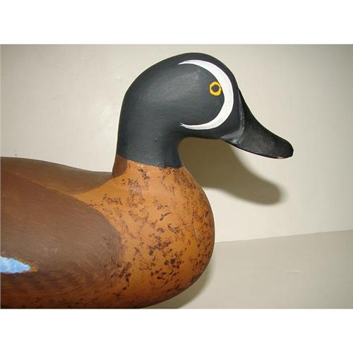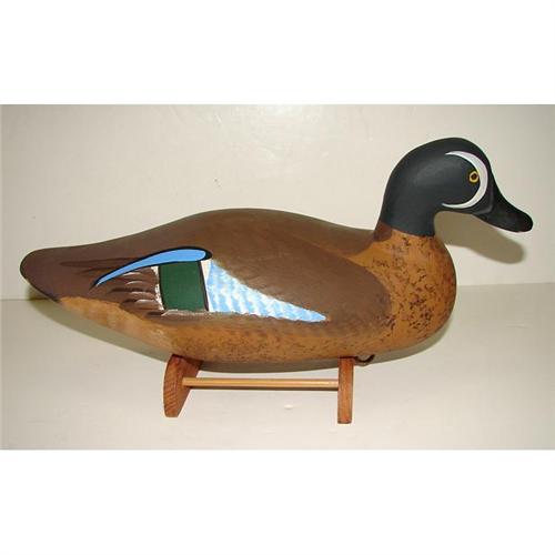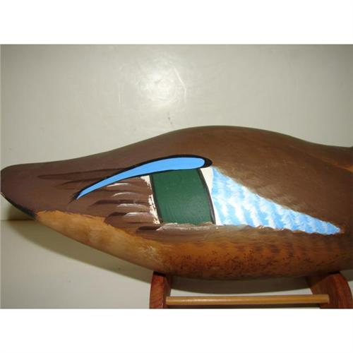 CAPT. HARRY JOBES BLUE WING TEAL DRAKE DECOY. Signed on bottom “Capt. Harry Jobes/1991”. 13.5” L