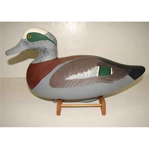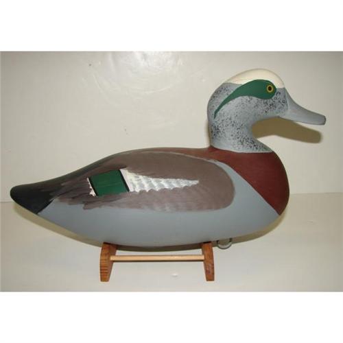 CAPT. HARRY JOBES WIDGEON DRAKE DECOY. Shows some cracking to wood at head. Signed on bottom “Capt. Harry Jobes”. 14.5” L