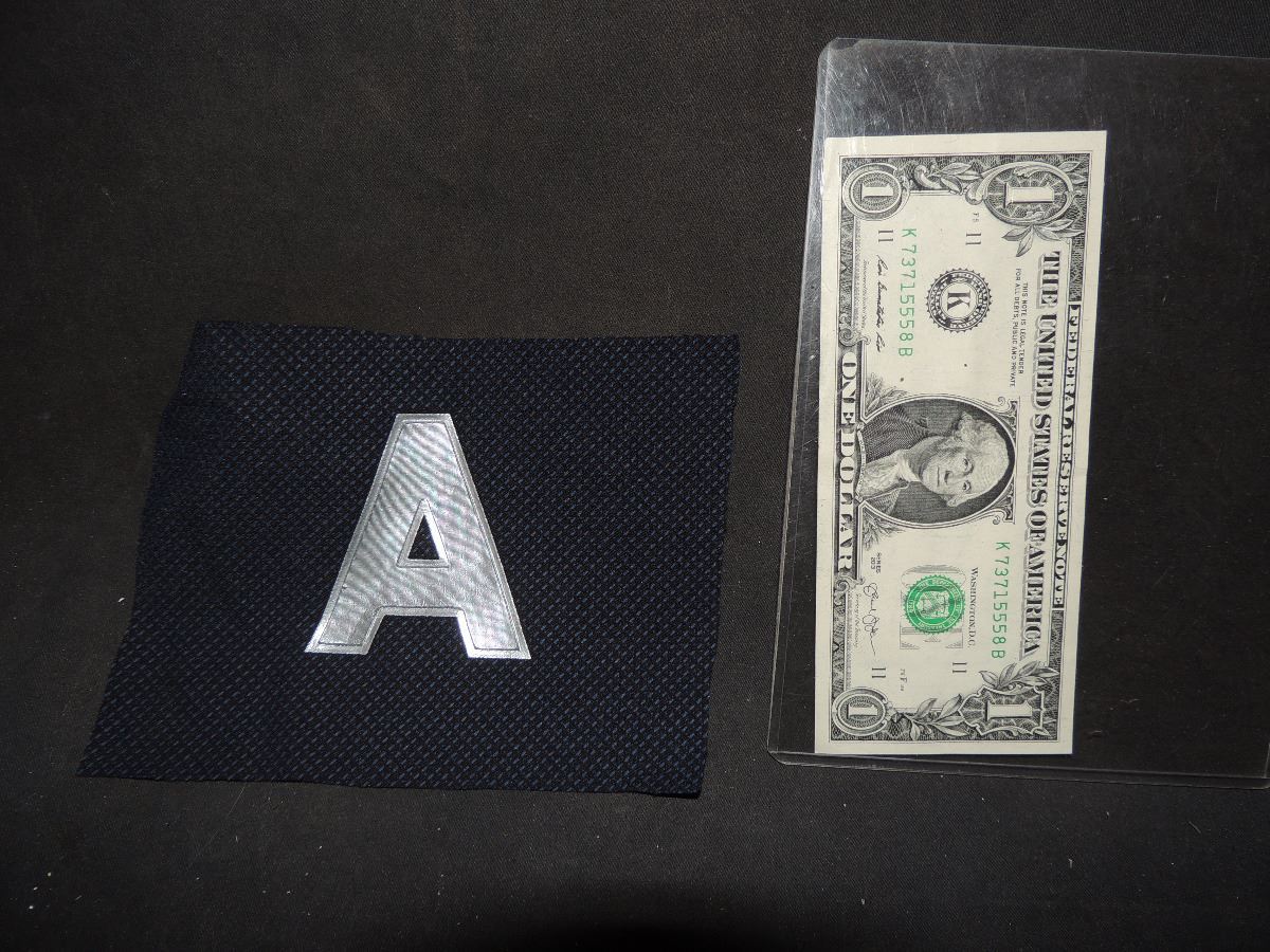 This is a production original A glyph from CAPTAIN AMERICA'S helmet.