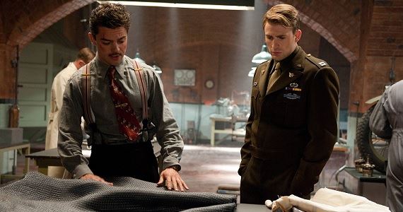 Very cool SCREEN USED WWII ARMY coat worn by Chris Evans in CAPTAIN AMERICA THE FIRST AVENGER! Has Marvel label with Evans and Hero written inside.